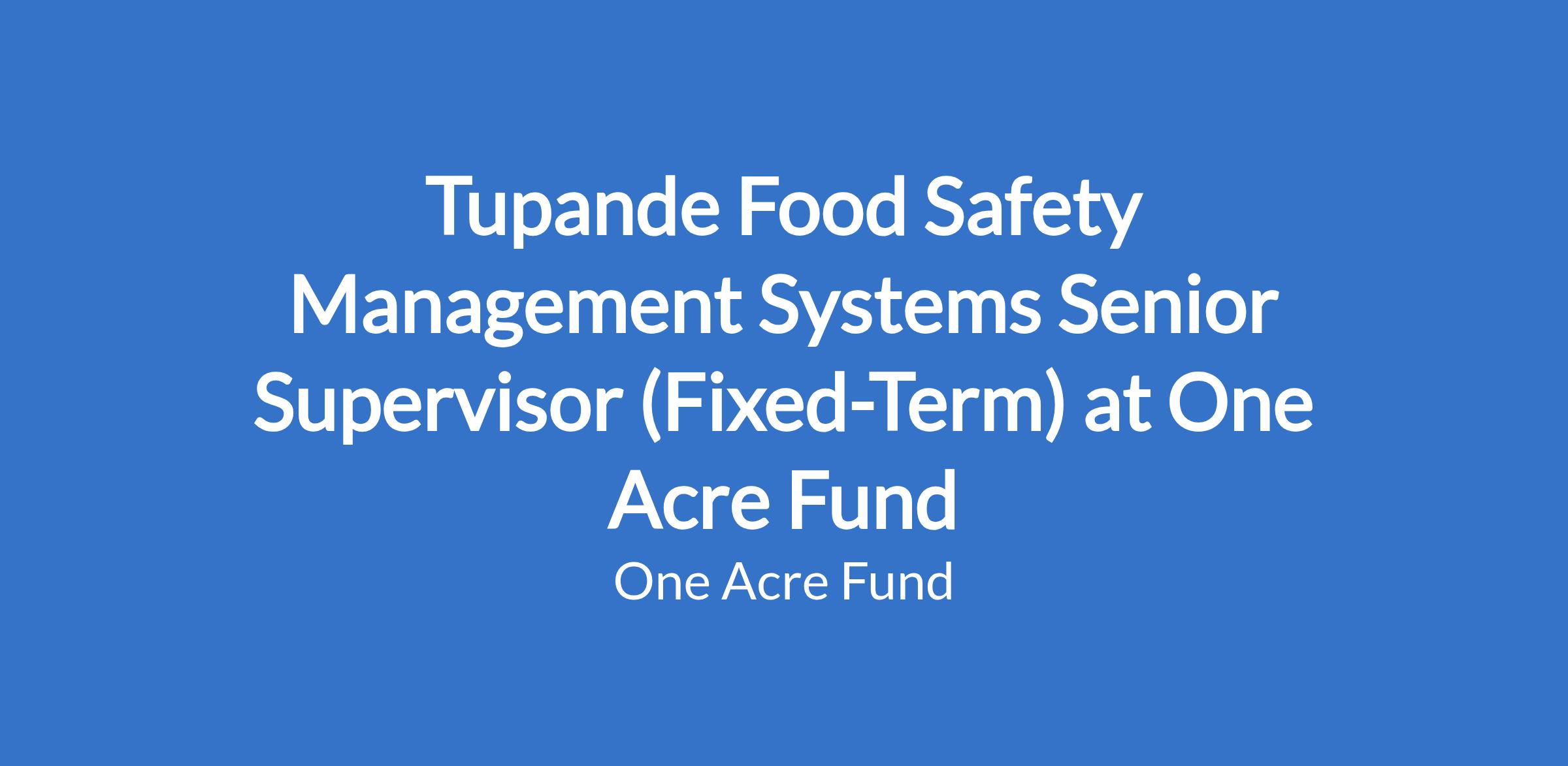 Tupande Food Safety Management Systems Senior Supervisor (Fixed-Term) at One Acre Fund