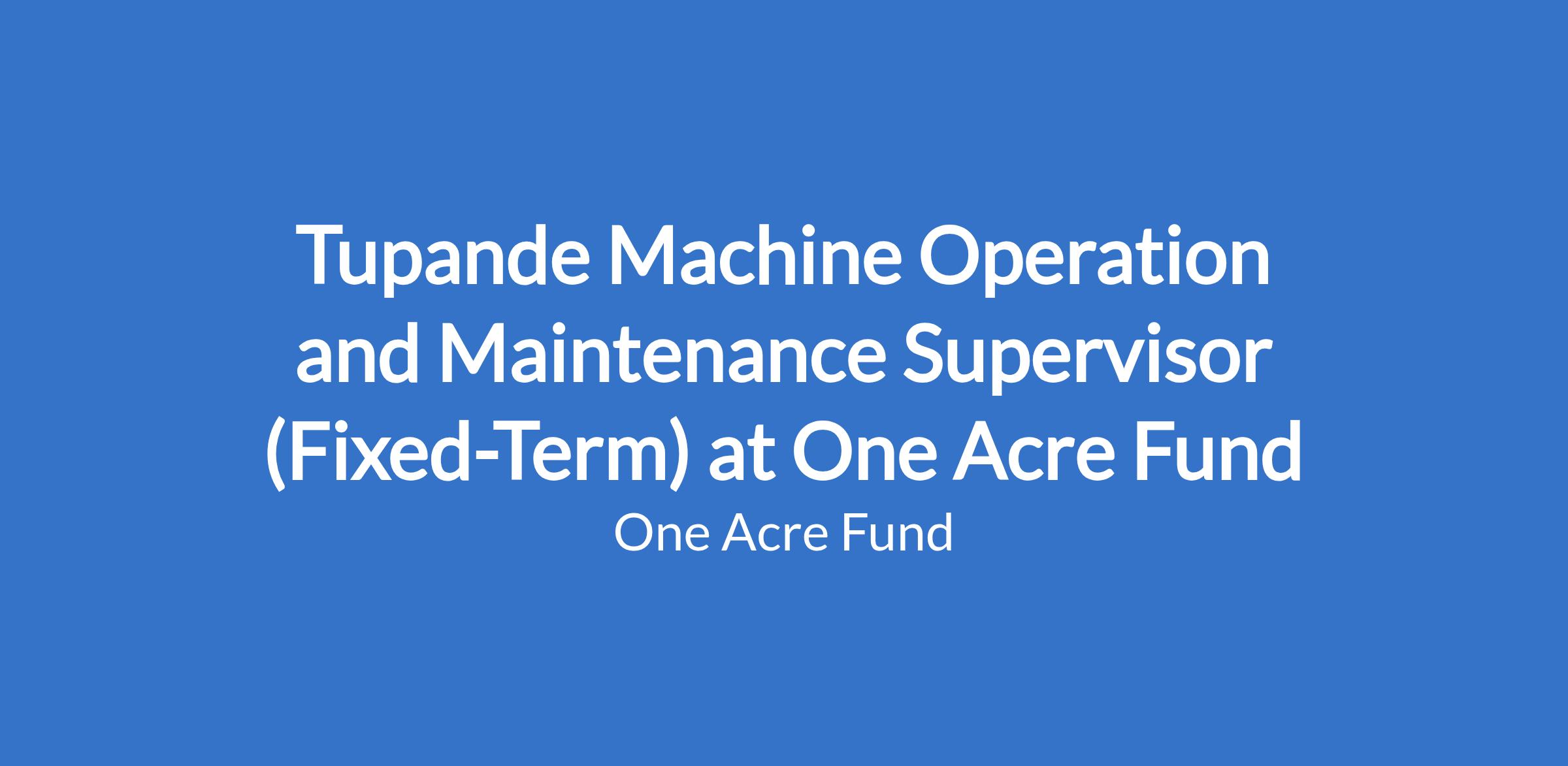 Tupande Machine Operation and Maintenance Supervisor (Fixed-Term) at One Acre Fund