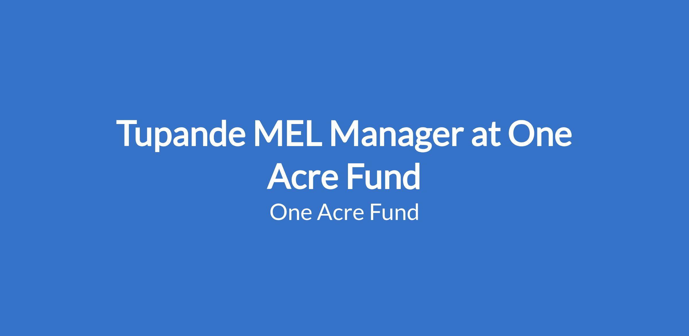 Independently lead in-country or program-level impact evaluation and studies of interest to the program. Represent MEL work within Tupande and One Acre Fund and ensure stakeholders clearly understand the actionable results presented.