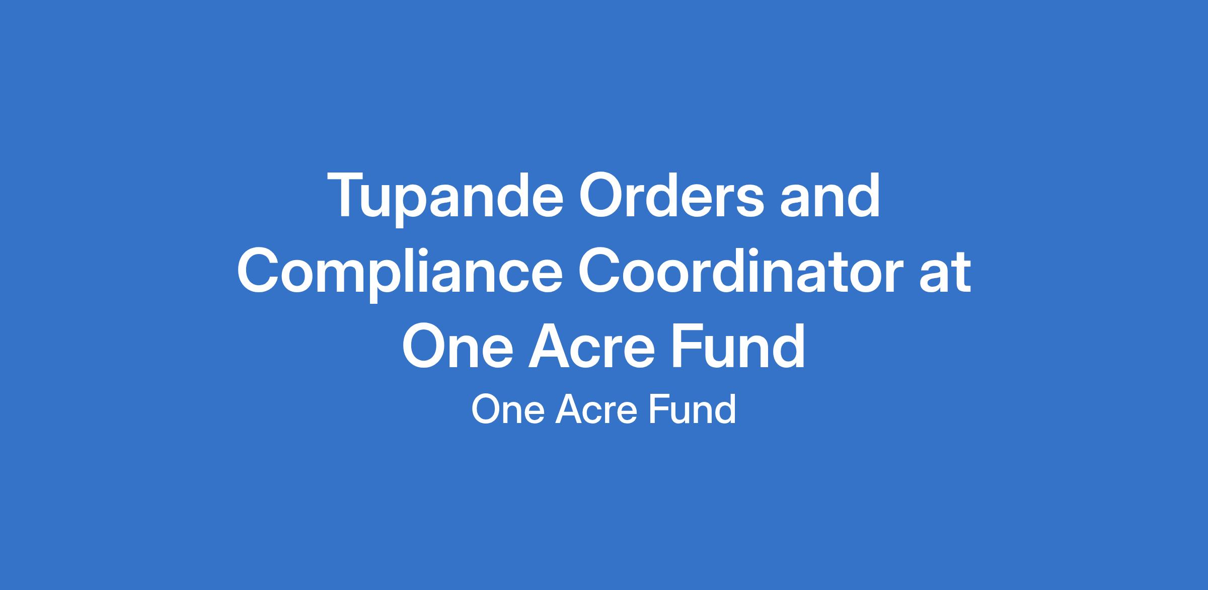 Tupande Orders and Compliance Coordinator at One Acre Fund