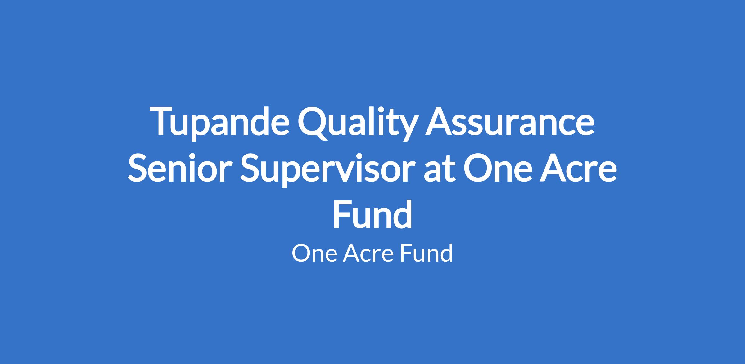 Tupande Quality Assurance Senior Supervisor at One Acre Fund