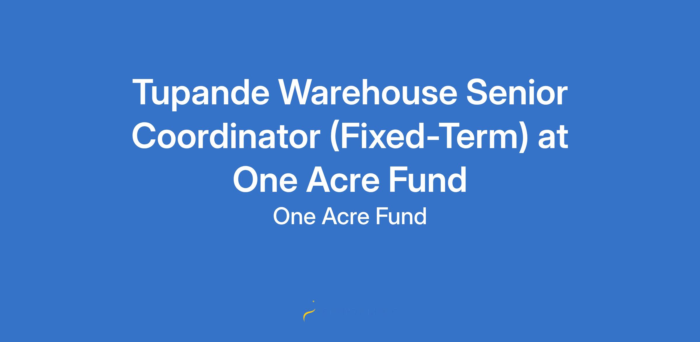 Tupande Warehouse Senior Coordinator (Fixed-Term) at One Acre Fund