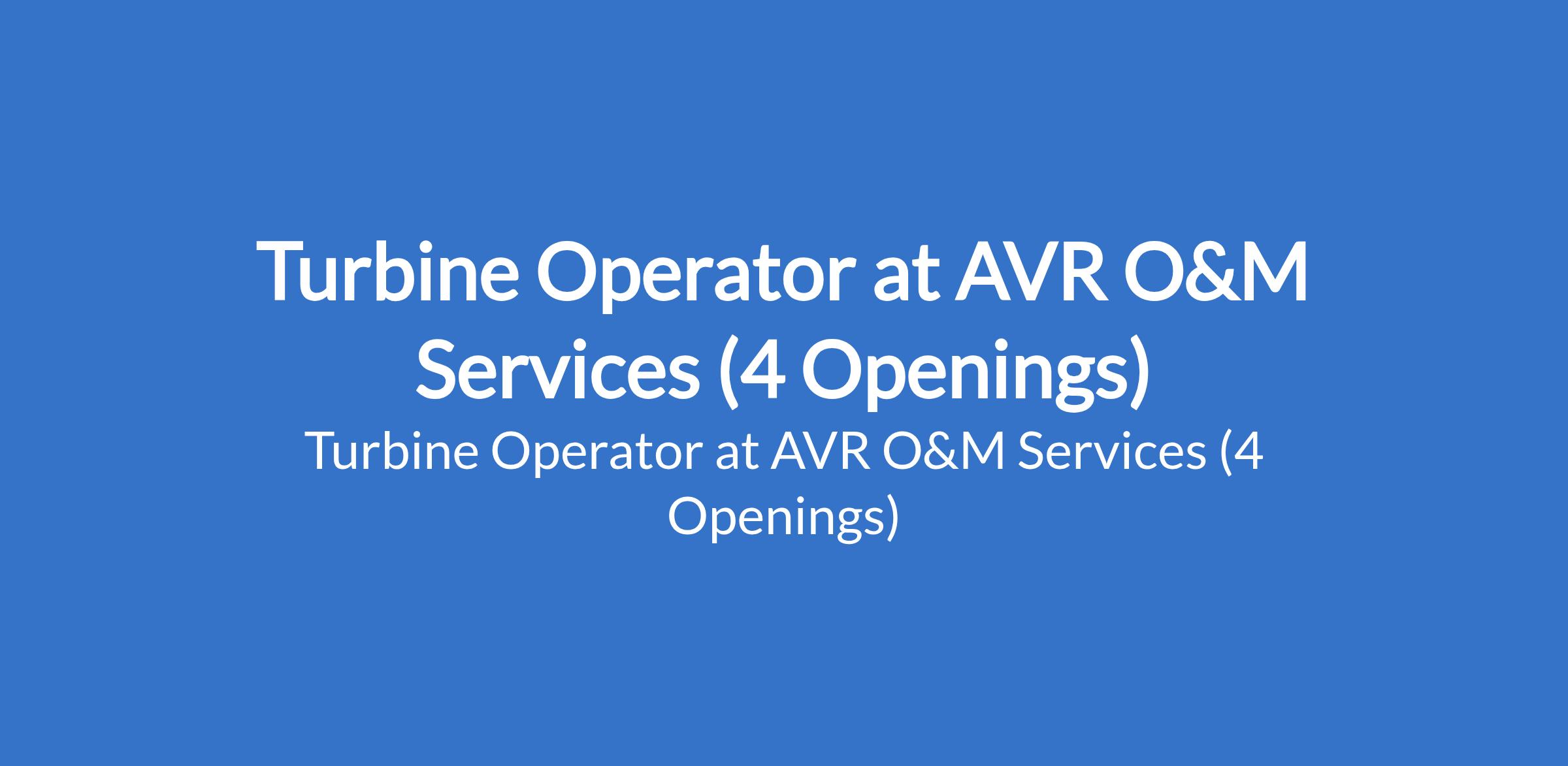 AVR O&M Services is recruiting to fill the position of: Turbine Operator. The position is located in Kano State. Interested candidates should possess a relevant qualification with at least 5 years experience in operation & Management (O&M) in power plant.