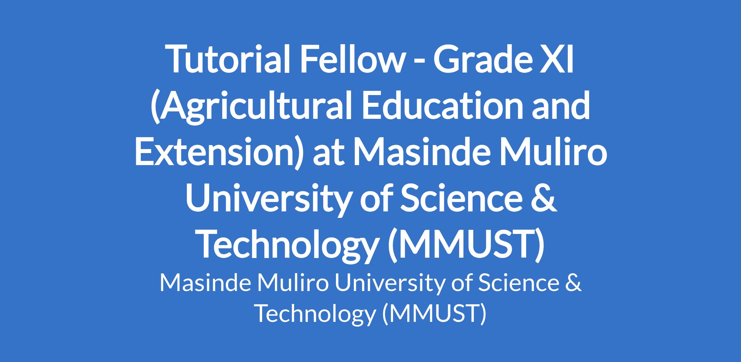 Tutorial Fellow - Grade XI (Agricultural Education and Extension) at Masinde Muliro University of Science & Technology (MMUST)
