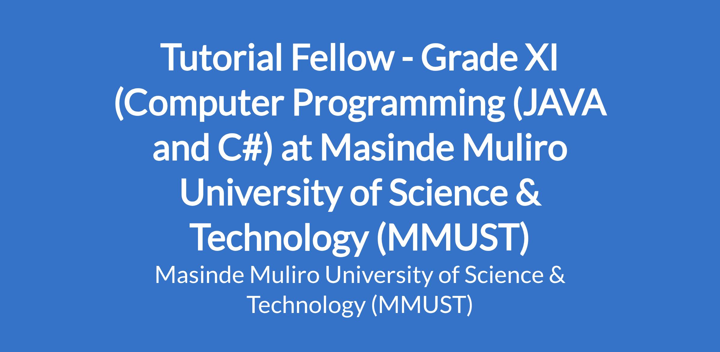 Tutorial Fellow - Grade XI (Computer Programming (JAVA and C#) at Masinde Muliro University of Science & Technology (MMUST)