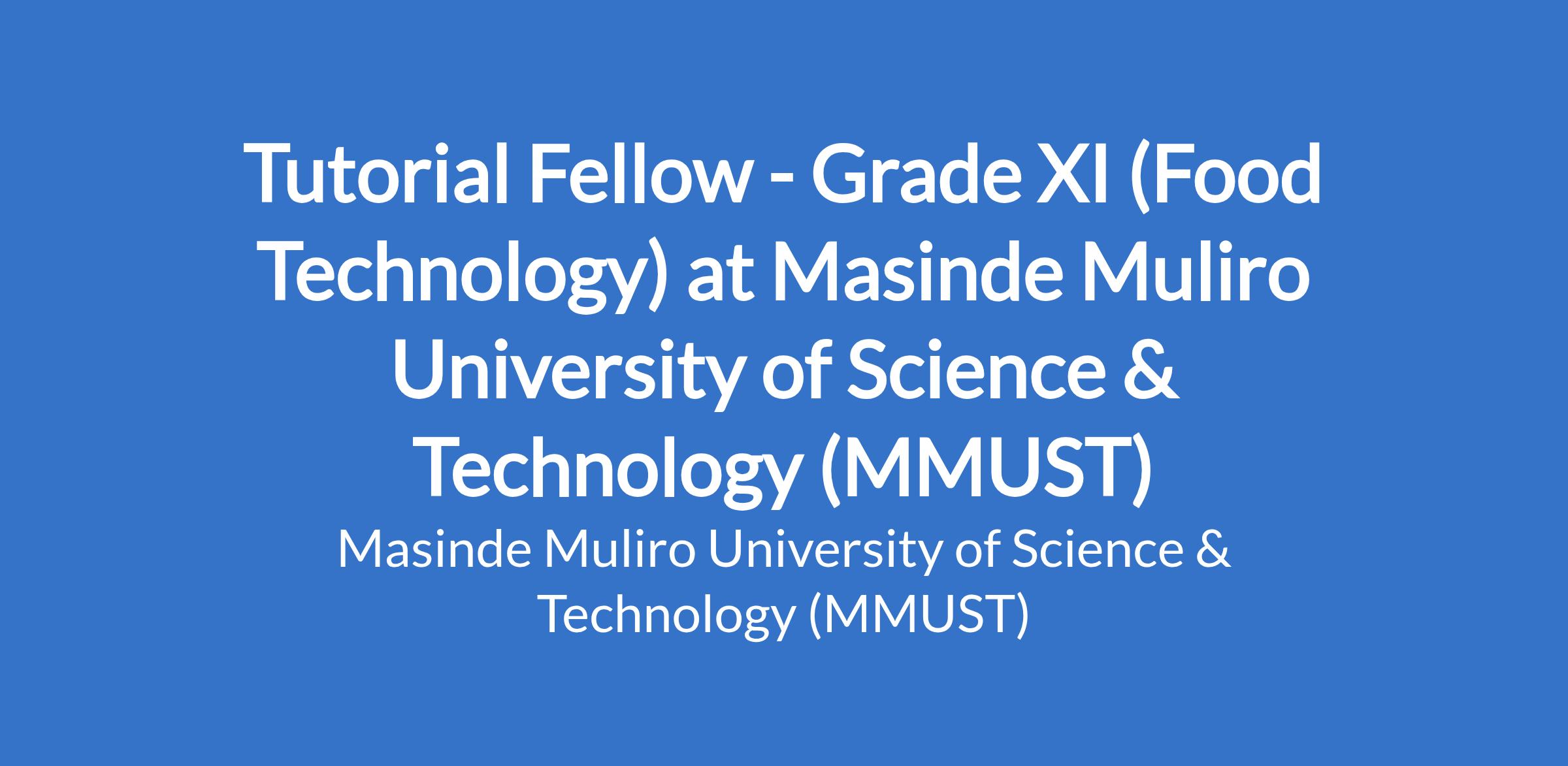 Tutorial Fellow - Grade XI (Food Technology) at Masinde Muliro University of Science & Technology (MMUST)