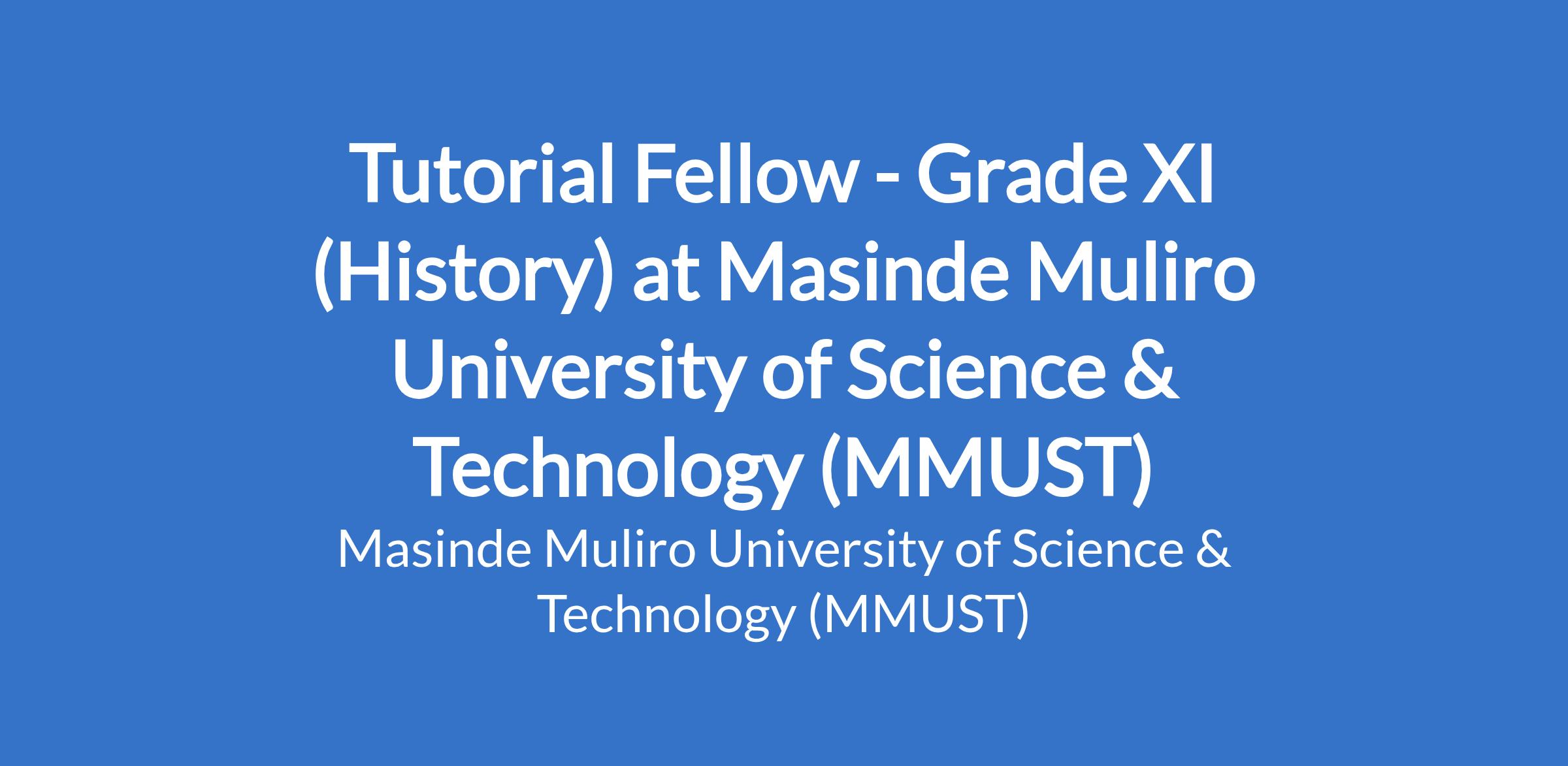 Tutorial Fellow - Grade XI (History) at Masinde Muliro University of Science & Technology (MMUST)