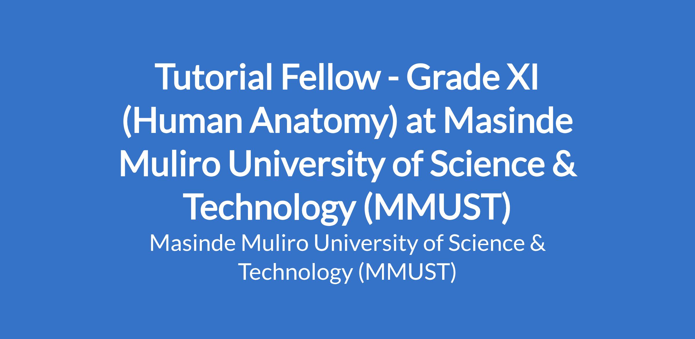 Tutorial Fellow - Grade XI (Human Anatomy) at Masinde Muliro University of Science & Technology (MMUST)