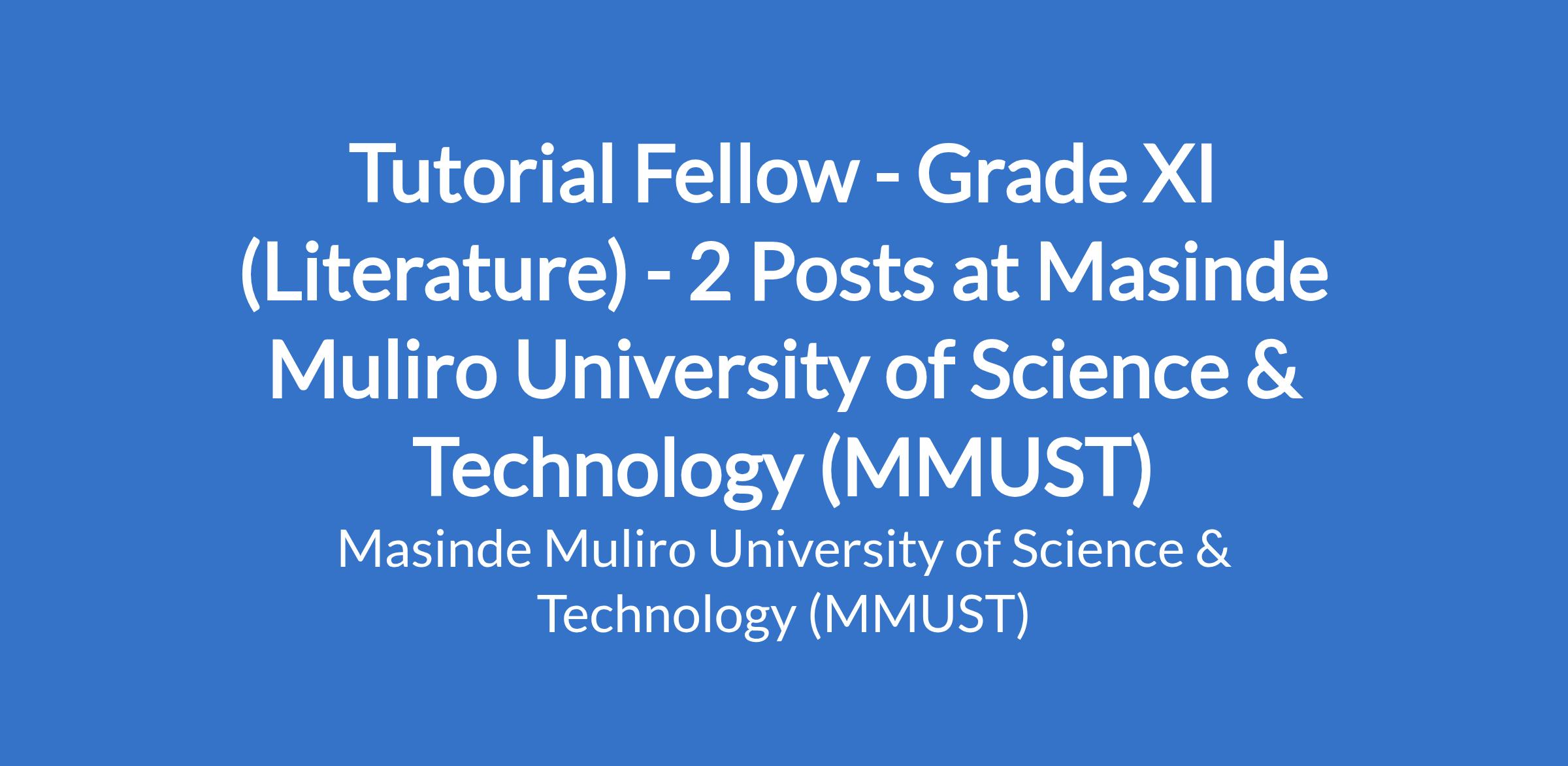 Tutorial Fellow - Grade XI (Literature) - 2 Posts at Masinde Muliro University of Science & Technology (MMUST)