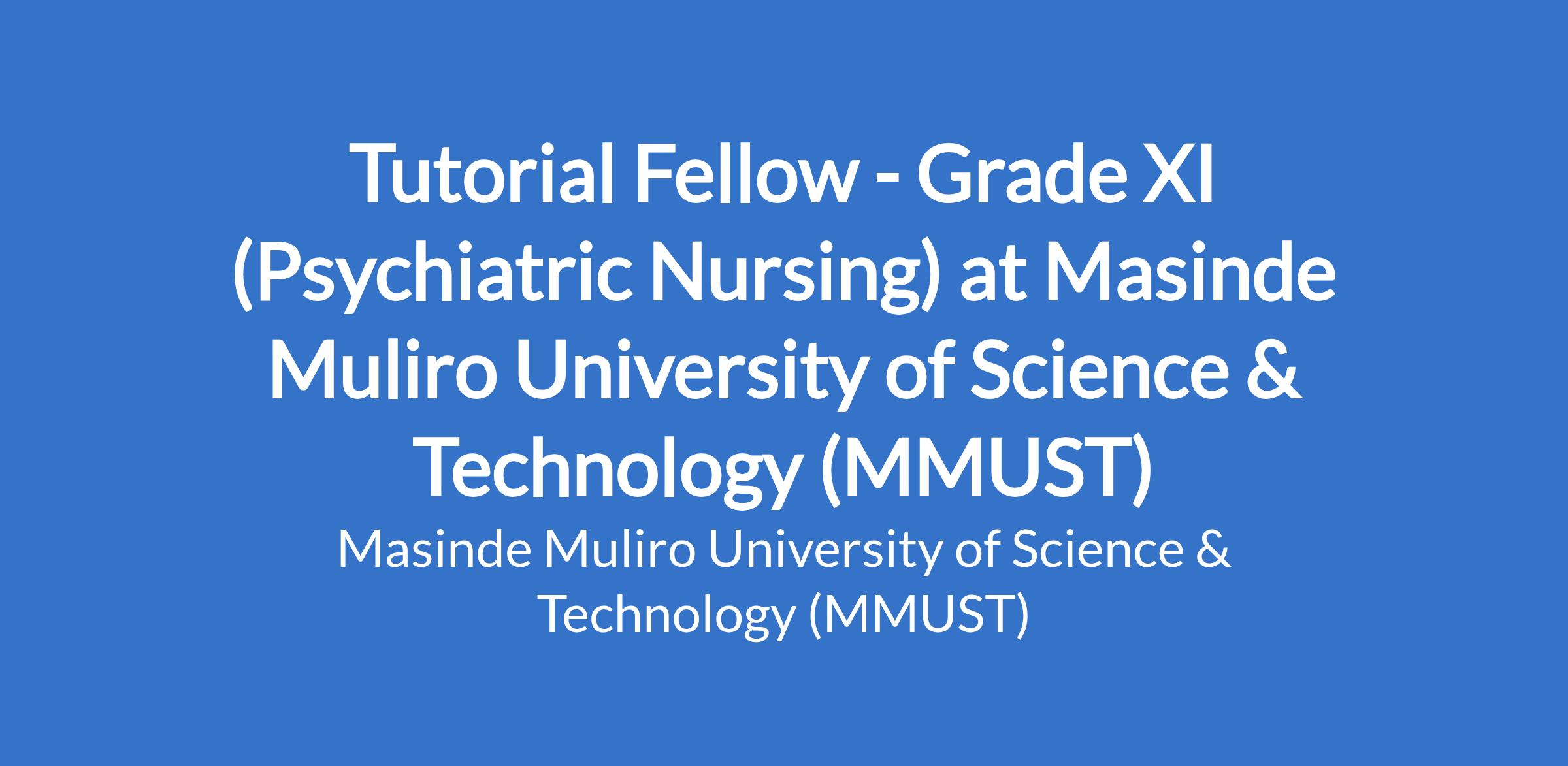 Tutorial Fellow - Grade XI (Psychiatric Nursing) at Masinde Muliro University of Science & Technology (MMUST)