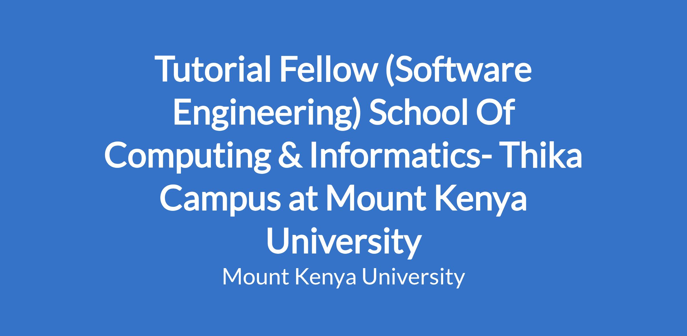 Tutorial Fellow (Software Engineering) School Of Computing & Informatics- Thika Campus at Mount Kenya University