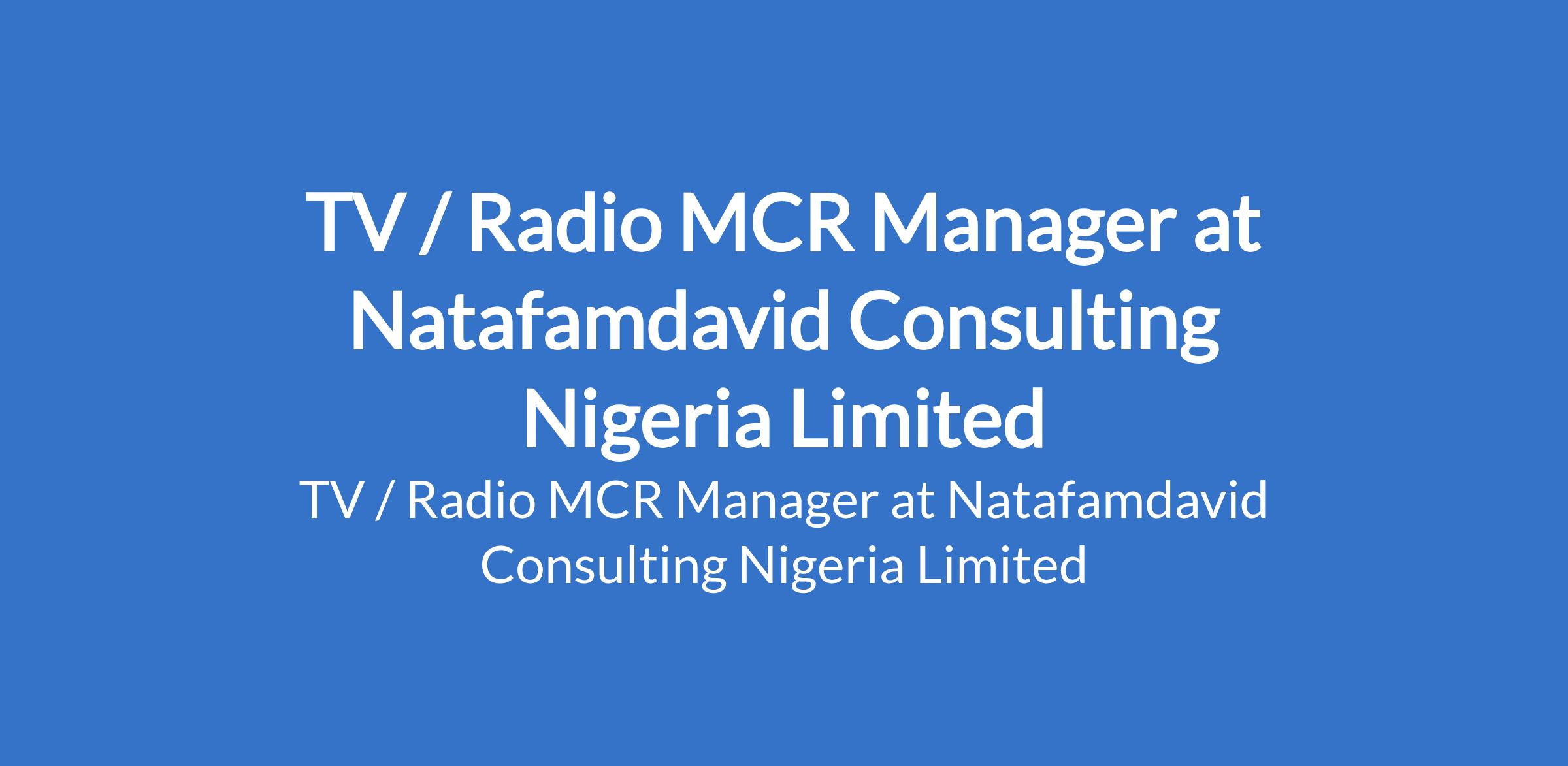Natafamdavid Consulting Nigeria Limited is recruiting to fill the position of: TV / Radio MCR Manager. The position is located in Ikeja, Lagos State. Interested candidates should possess a minimum of HND / B.Sc Degree in Broadcast Engineering, Electrical/Electronics Engineering, Media Technology, or related fields with 58 years experience in TV/Radio broadcast operations or Master Control Room management.