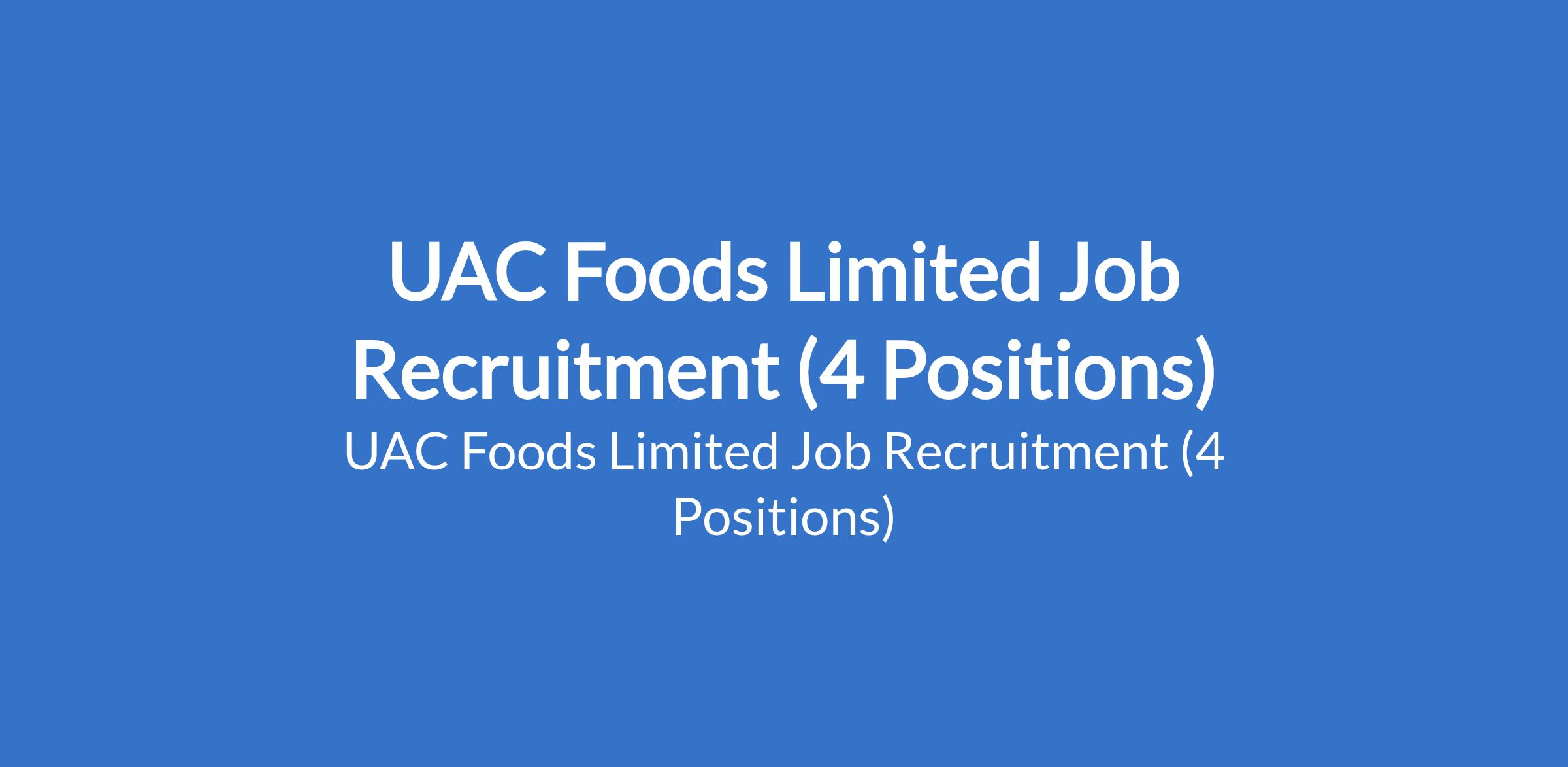 UAC Foods Limited Job Recruitment (4 Positions)