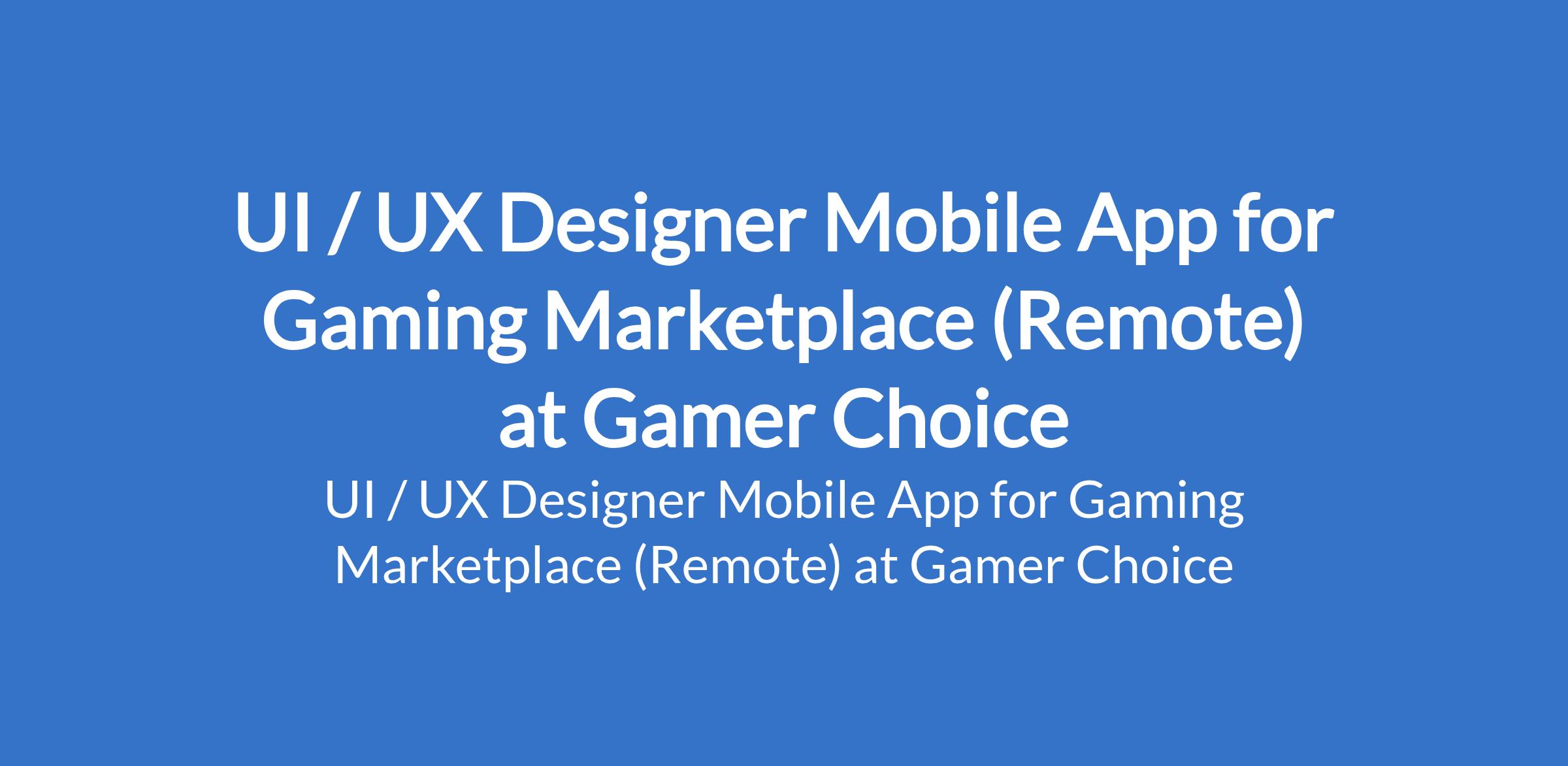 Gamer Choice is recruiting to fill the position of: UI / UX Designer Mobile App for Gaming Marketplace. This is a Remote Role. Interested candidates should possess relevant qualifications with 5+ years of experience in UI/UX design for mobile applications.