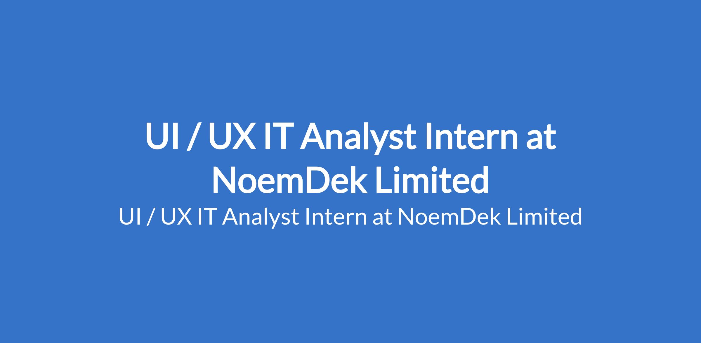 NoemDek Limited is recruiting to fill the position of: UI / UX IT Analyst Intern. The position is located in Ikoyi, Lagos State. As an intern, you will assist with system monitoring, data analysis, troubleshooting technical issues, and supporting ongoing technology projects across the organization. Interested candidates must be currently pursuing or recently completed a Degree in Computer Science, Information Technology, Engineering, or a related field.