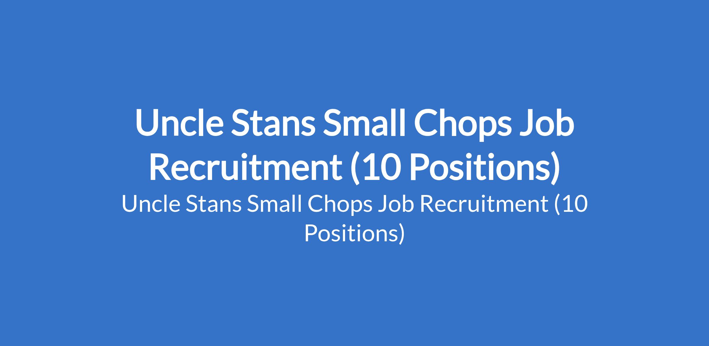 Uncle Stans Small Chops is recruiting suitably qualified candidates to fill the following positions in Lagos State: Kitchen Assistant, Customer Service Representative, Operations Manager, Production Manager, Restaurant Manager, Personal Assistant, Internal Auditor, Accountant, Social Media Manager, Graphics Designer, and Content Creator.