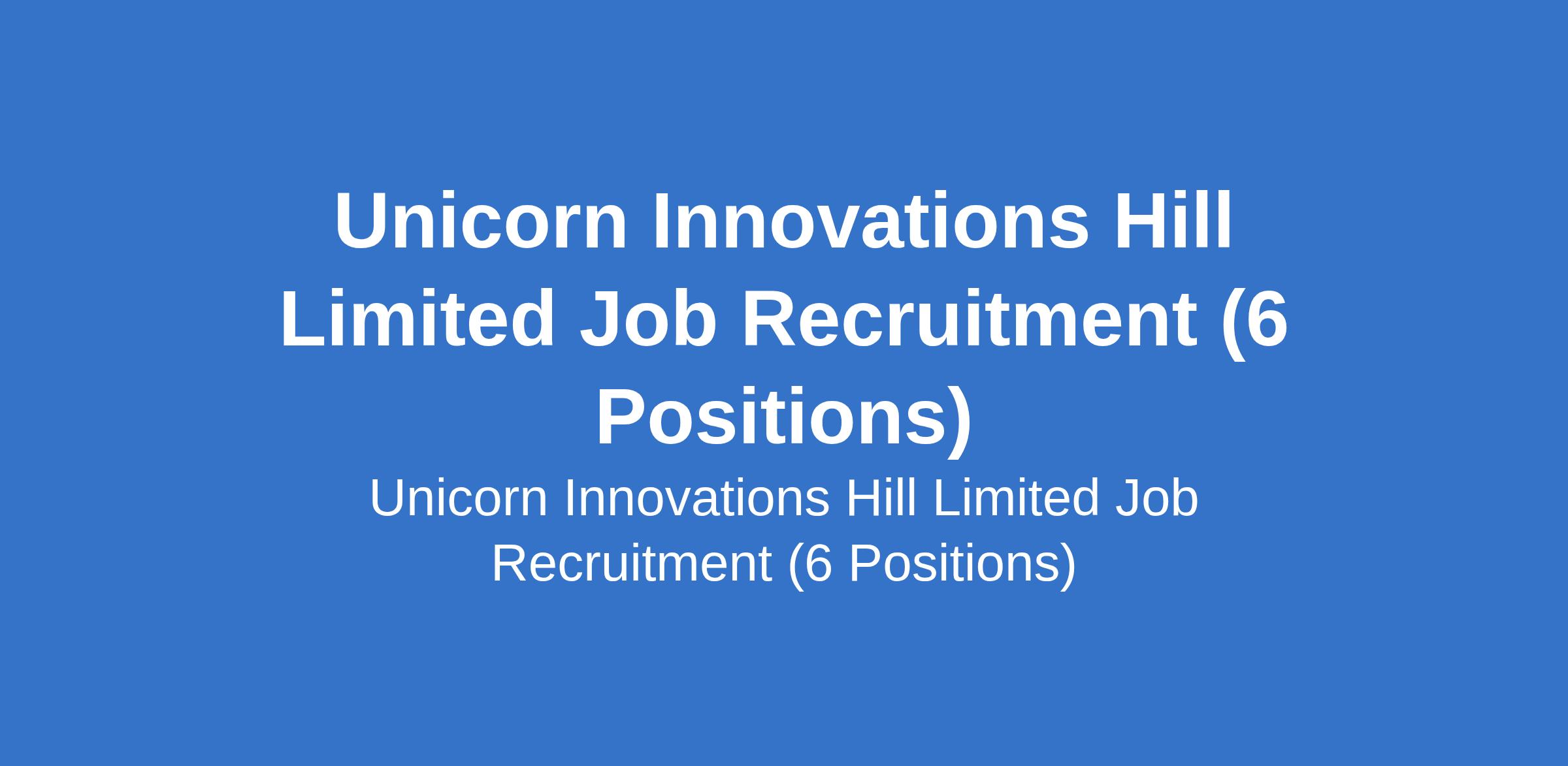 Unicorn Innovations Hill Limited Job Recruitment (6 Positions)