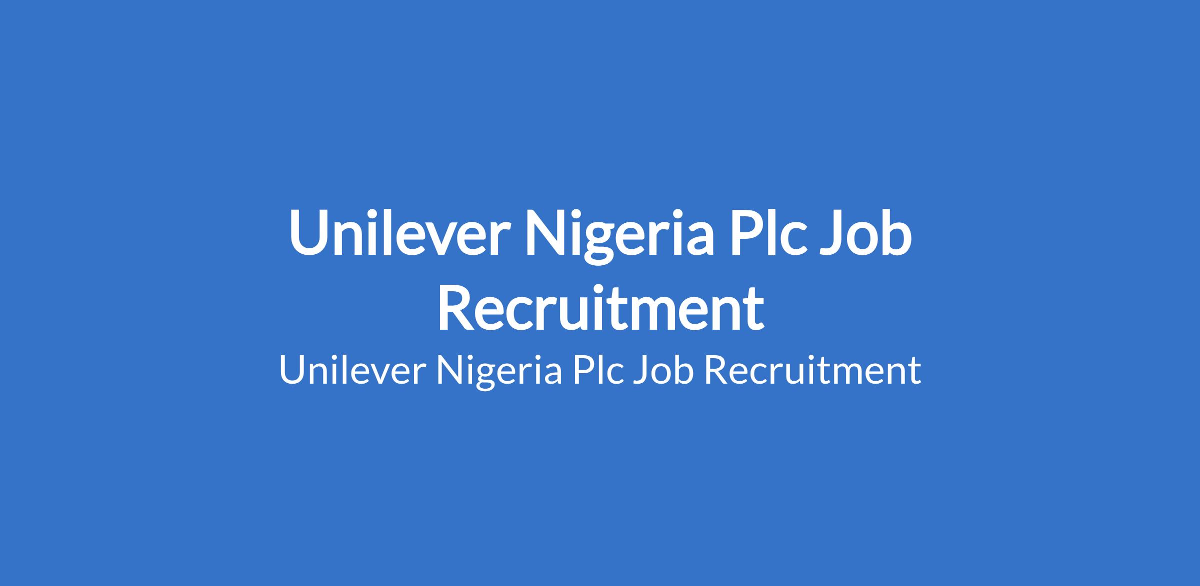 Unilever Nigeria Plc Job Recruitment