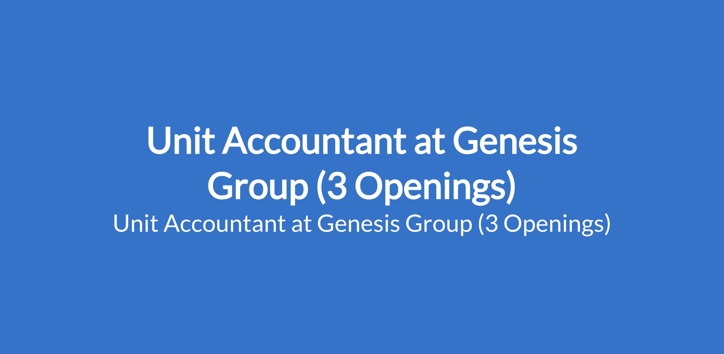 Genesis Group is recruiting to fill the position of: Unit Accountant. The position is located in Abuja, Asaba - Delta and Benin - Edo States. Interested candidates should possess a Bachelors Degree in Accounting, Finance, or a related field.