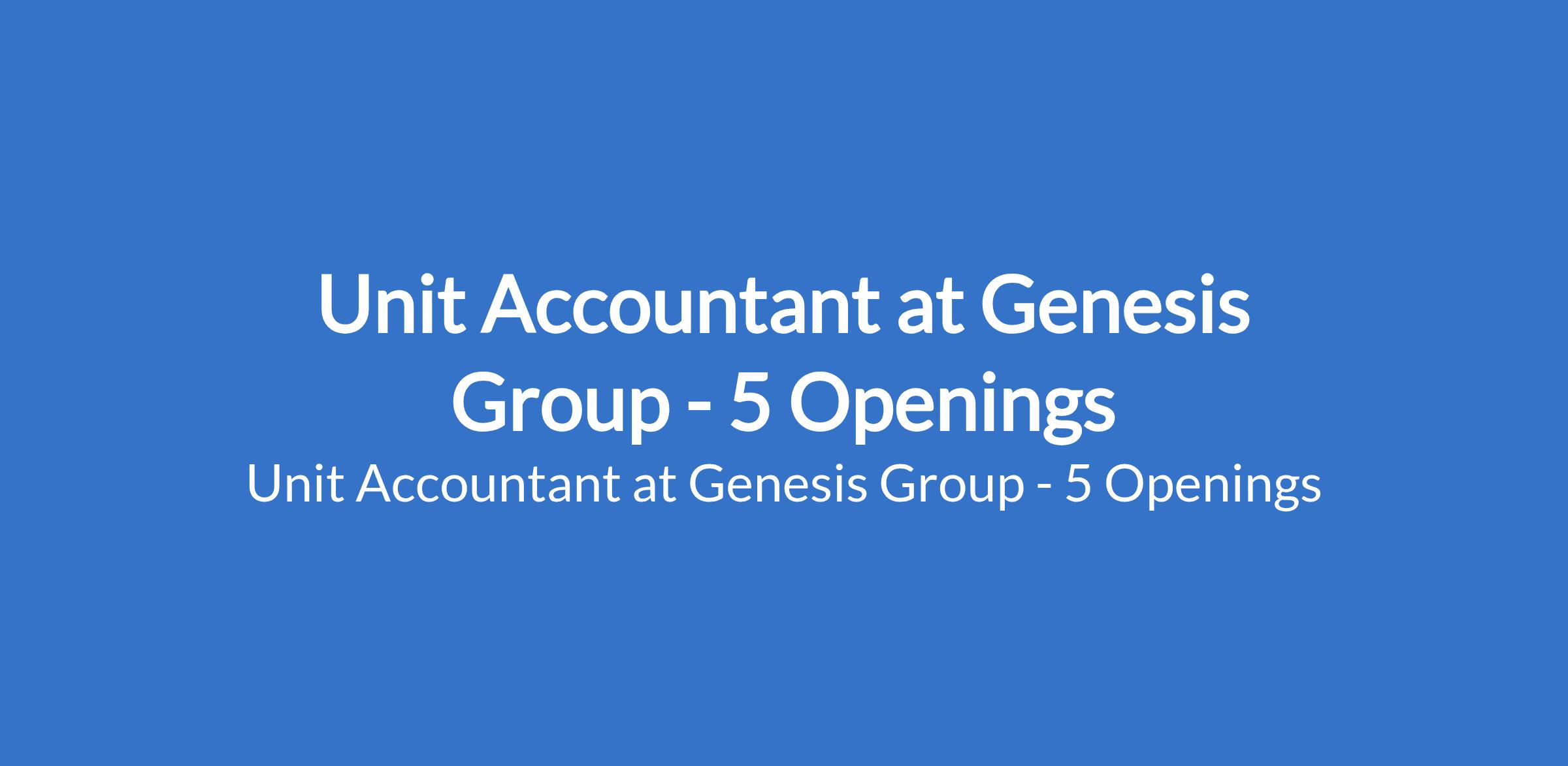 Genesis Group is recruiting to fill the position of: Unit Accountant. The position is located in Ikeja-Lagos, Warri-Delta, Benin-Edo, Owerri-Imo, & Port Harcourt-Rivers States. Interested candidates should possess a B.Sc. Degree or HND in Accounting, Banking, or Finance with relevant experience.