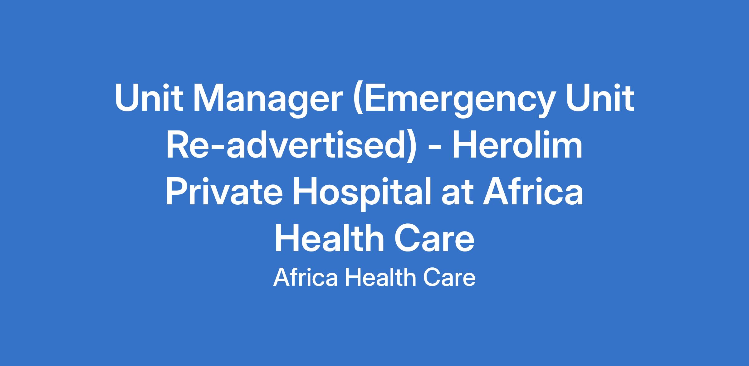 Unit Manager (Emergency Unit Re-advertised) - Herolim Private Hospital at Africa Health Care