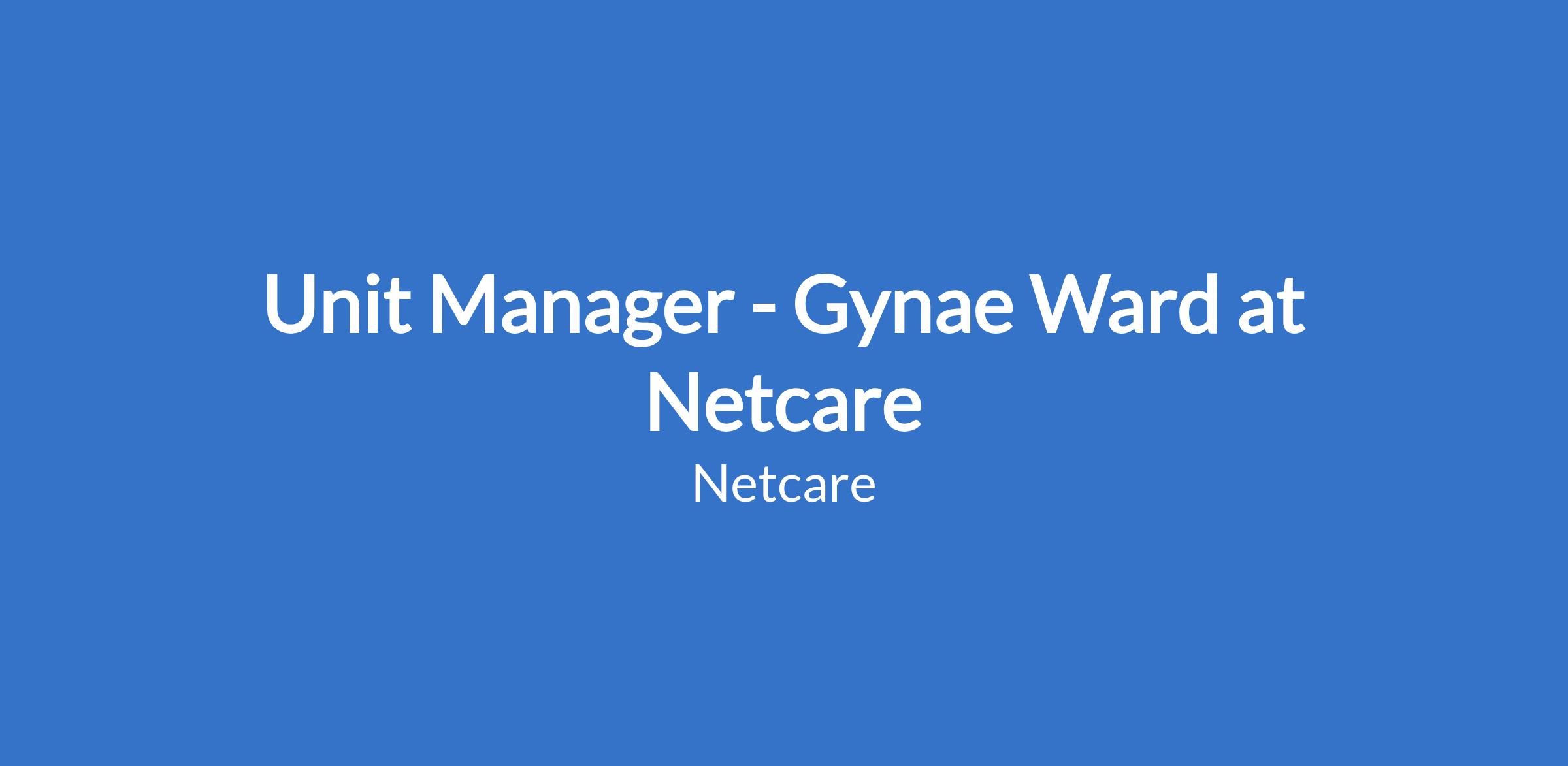 Unit Manager - Gynae Ward at Netcare