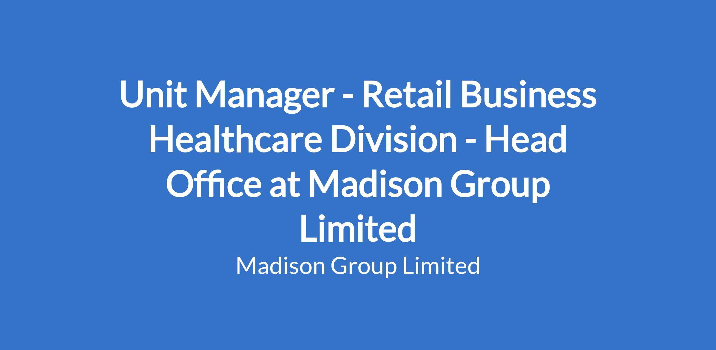 Unit Manager - Retail Business Healthcare Division - Head Office at Madison Group Limited