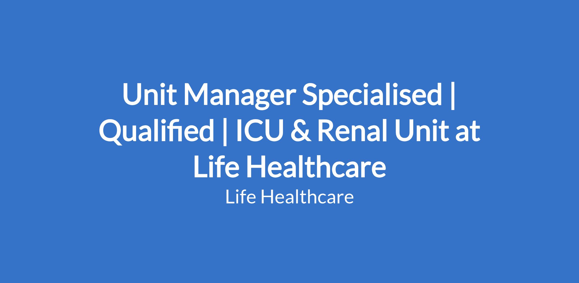 Unit Manager Specialised | Qualified | ICU & Renal Unit at Life Healthcare