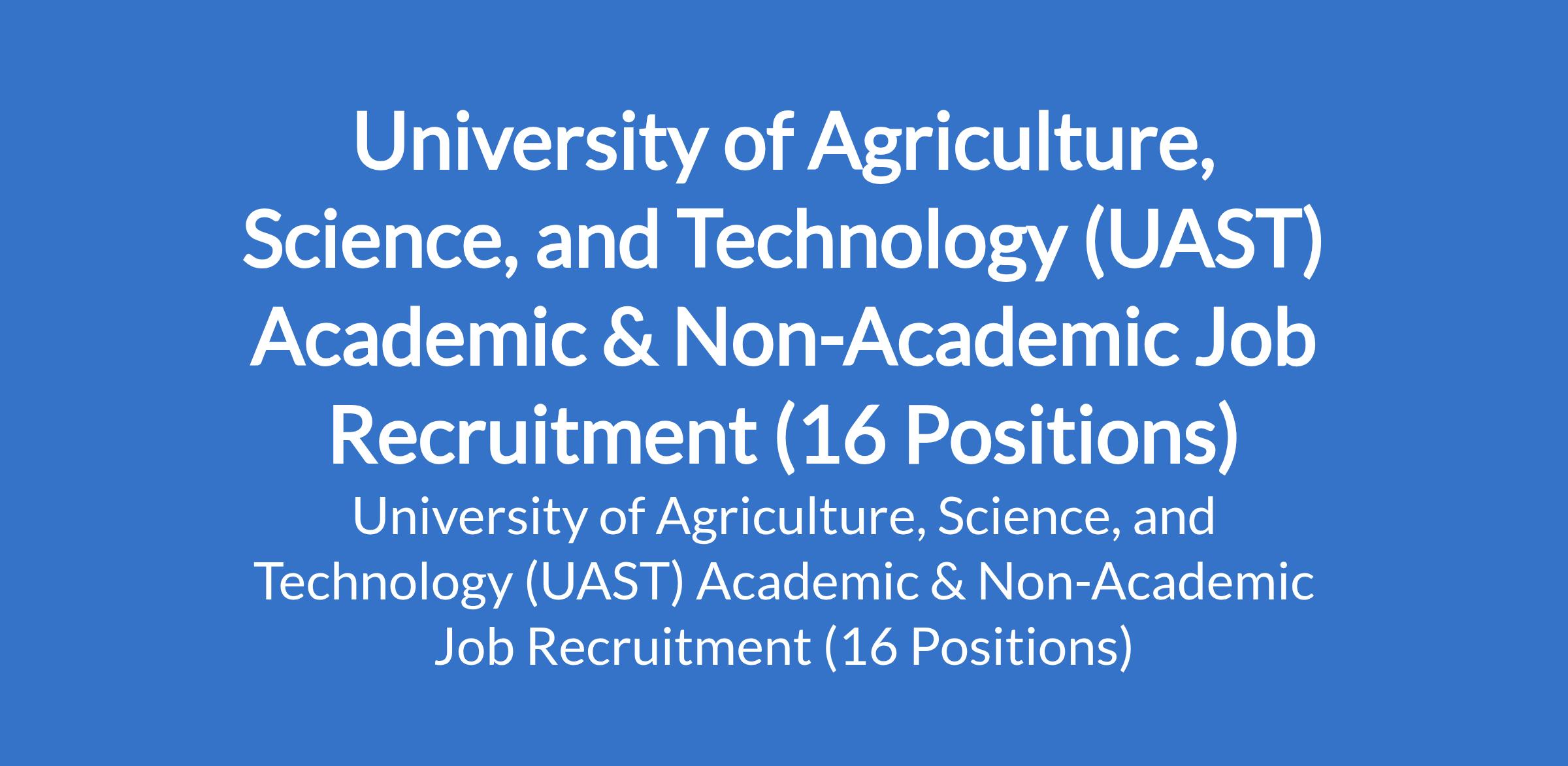 University of Agriculture, Science, and Technology (UAST) Academic & Non-Academic Job Recruitment (16 Positions)