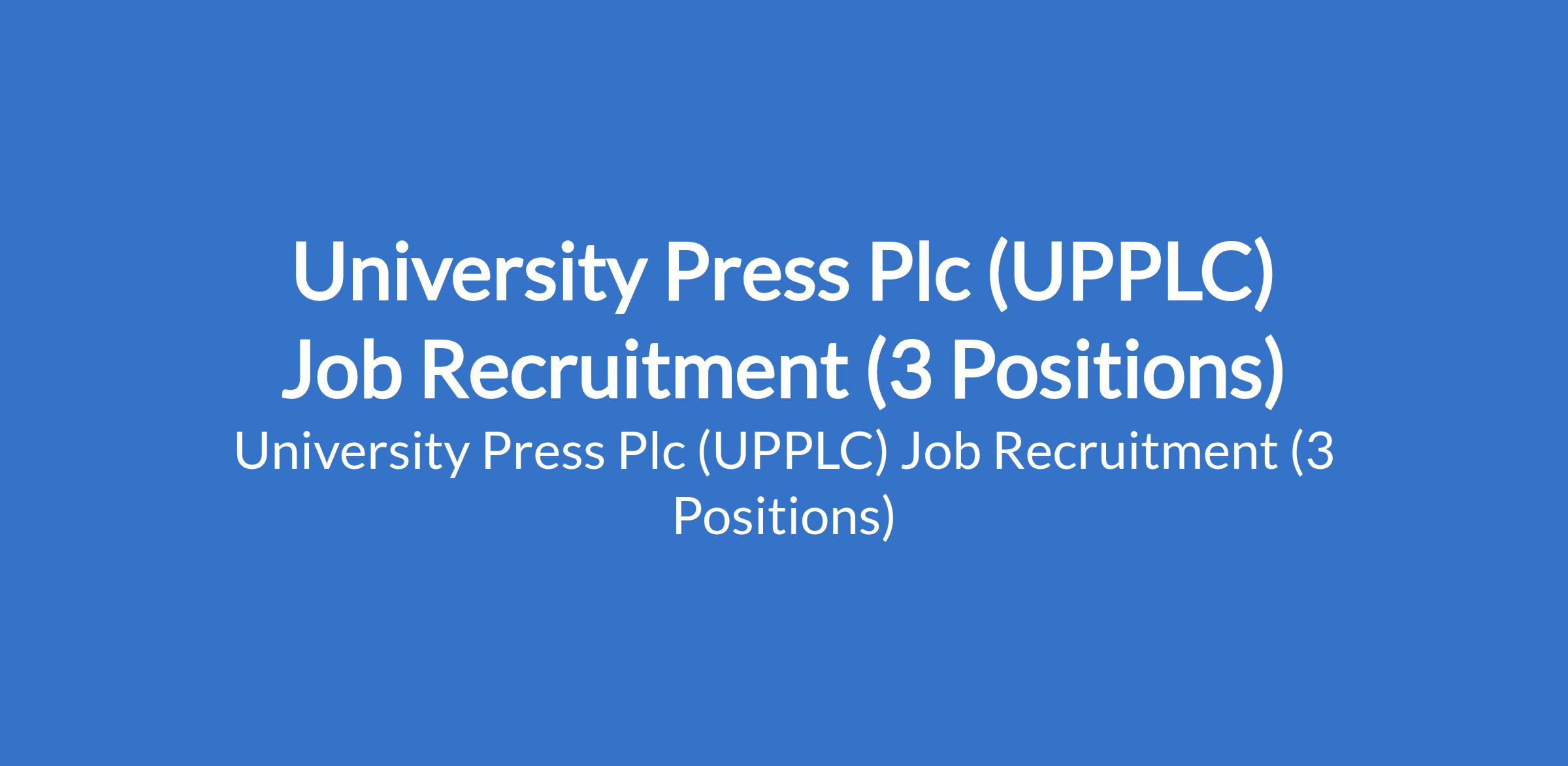 University Press Plc (UPPLC) is recruiting suitably qualified candidates to fill the following positions in Abuja (FCT), Kogi, Ogun, Imo, Kwara, Kaduna, Edo, Lagos, Akwa Ibom, Anambra, Bayelsa, and Rivers States: Educational Sales Representative, Accounts Officer, and Zonal Manager.