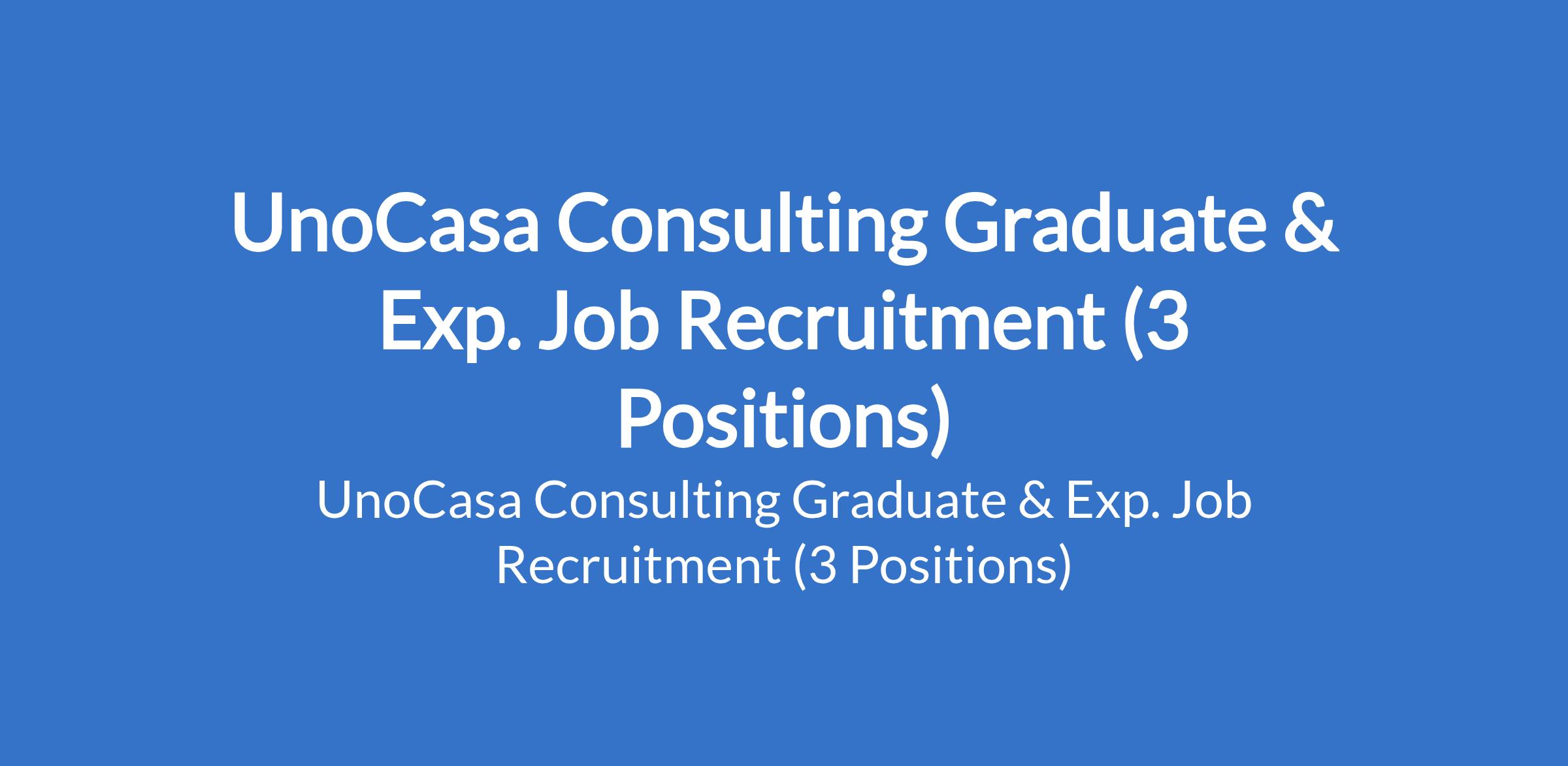 UnoCasa Consulting is recruiting suitable candidates to fill the following graduate and experienced positions in Lagos State: Chief Accountant, Contract Design Architect (Project-Based) Fresh Graduate / NYSC, and Senior Sales & Marketing Manager (Real Estate).