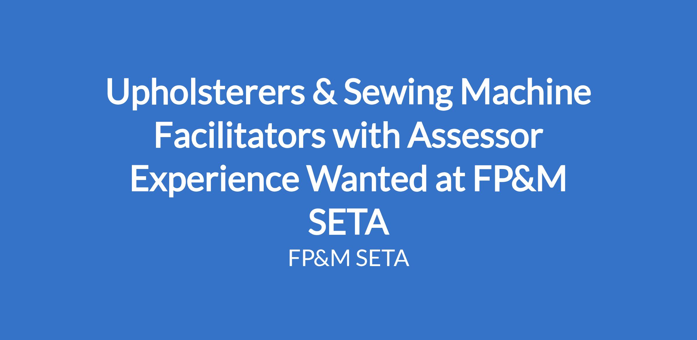 Upholsterers & Sewing Machine Facilitators with Assessor Experience Wanted at FP&M SETA