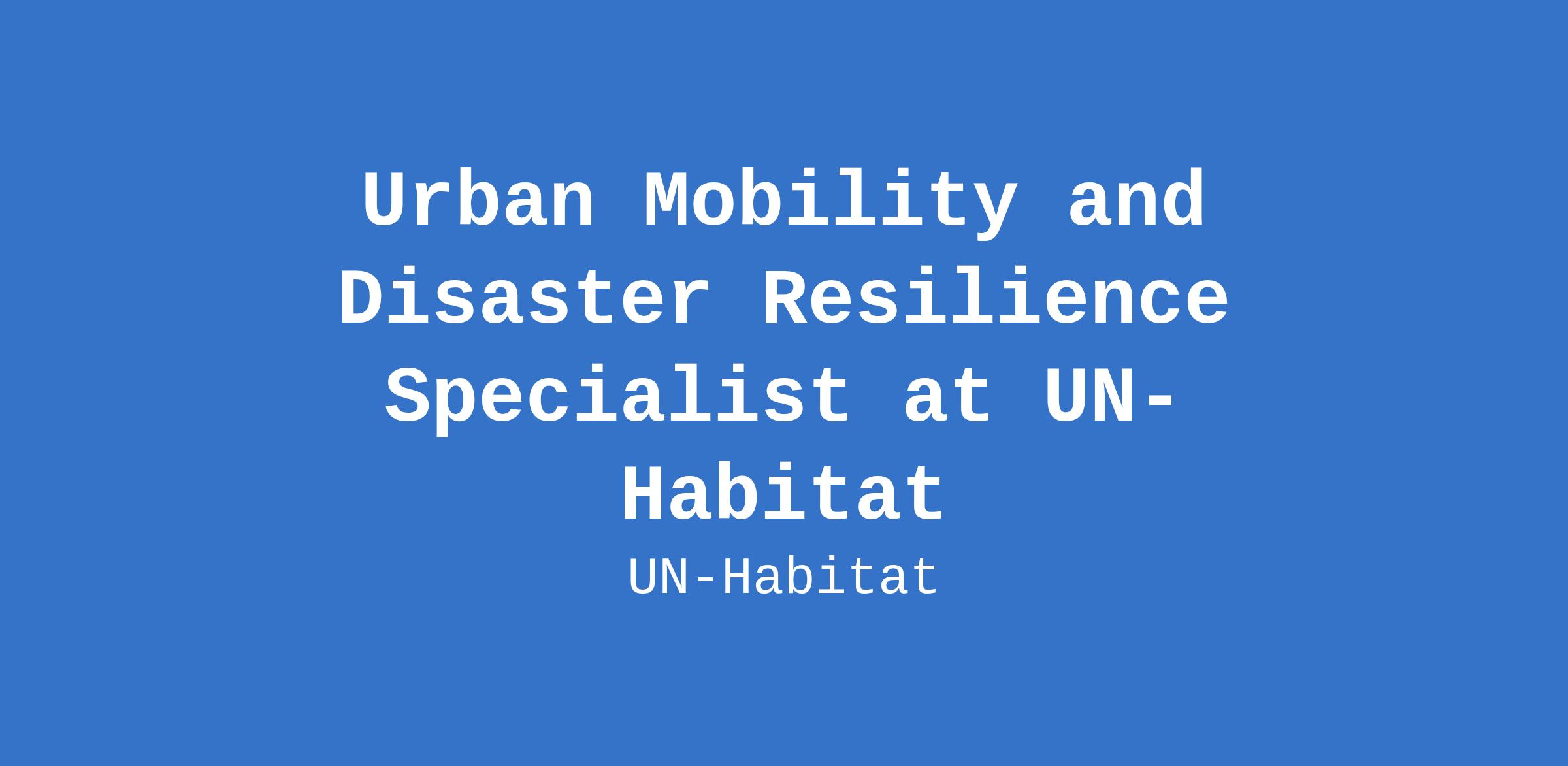 Urban Mobility and Disaster Resilience Specialist at UN-Habitat