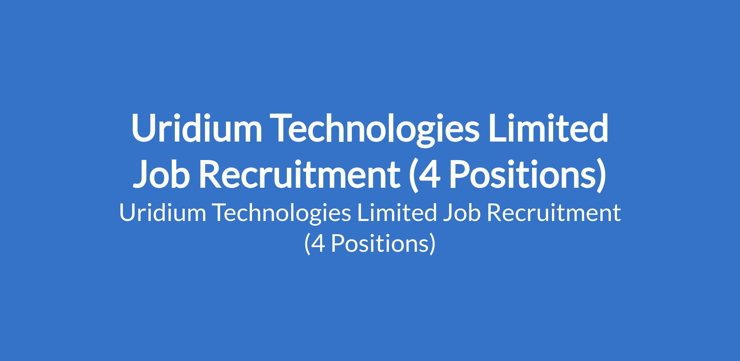 Uridium Technologies Limited Job Recruitment (4 Positions)