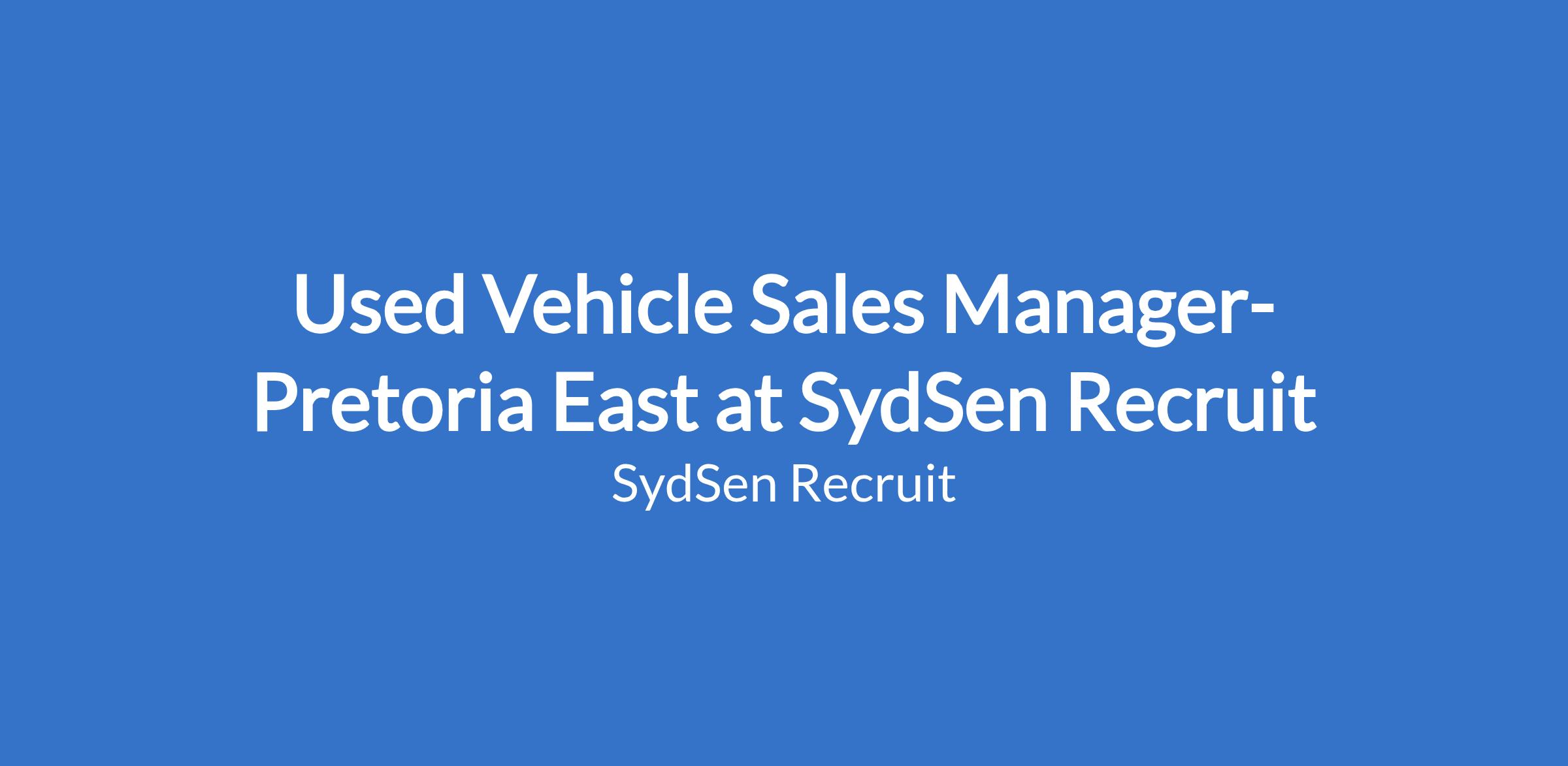 Used Vehicle Sales Manager- Pretoria East at SydSen Recruit