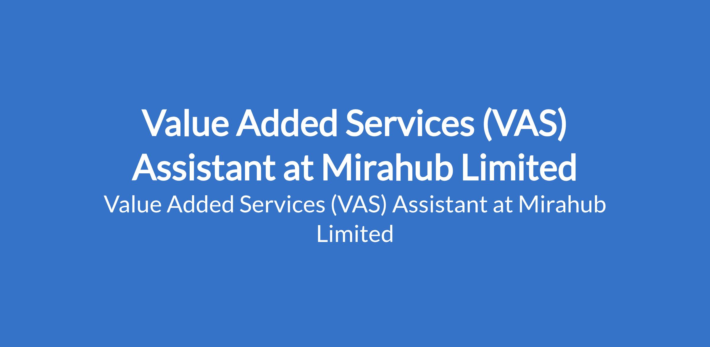 Mirahub Limited is recruiting to fill the position of: Value Added Services (VAS) Assistant. The position is located in Ikeja, Lagos State. Interested candidates should possess an OND / HND / Bachelors Degree in any related field with 0 2 years of experience in customer service, telecom, or tech support.