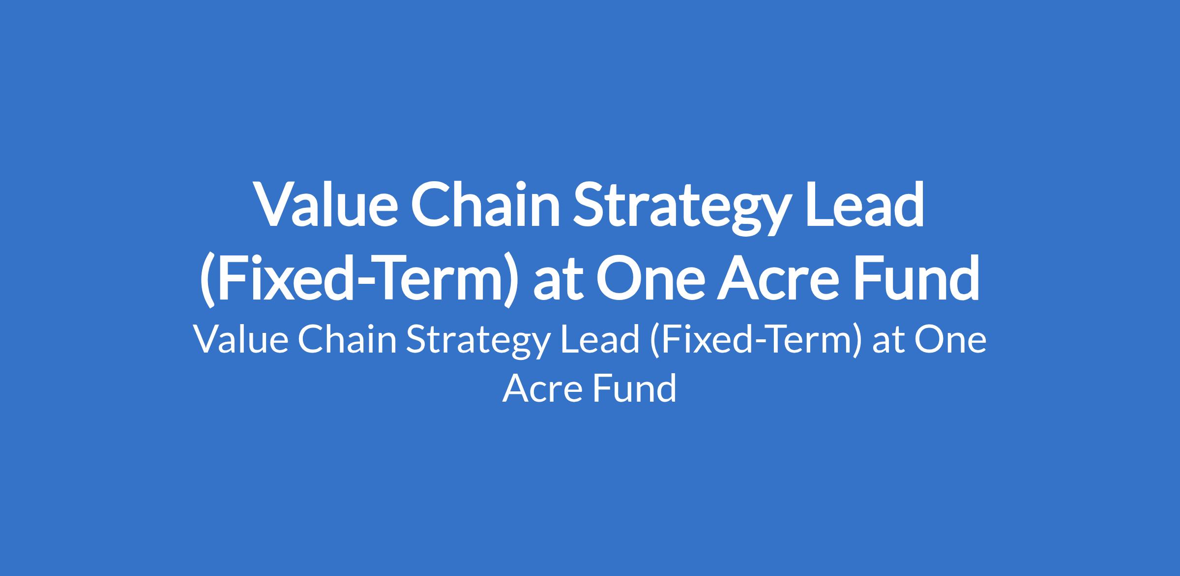 Value Chain Strategy Lead (Fixed-Term) at One Acre Fund