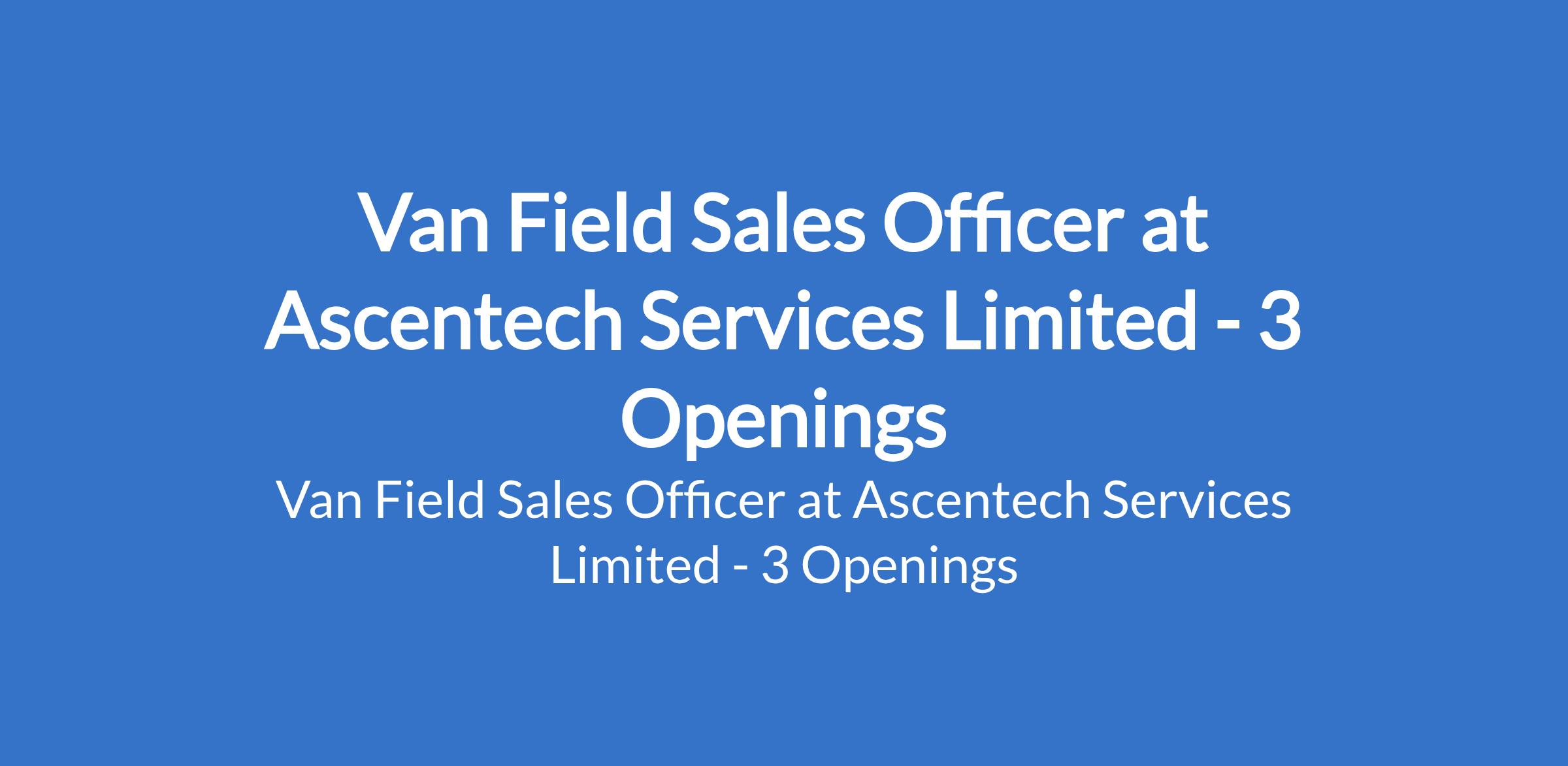 Ascentech Services Limited is recruiting to fill the position of: Van Field Sales Officer. The position is located in Saki, Iseyin and Main -Oyo State. Salary: N120,000 per month. Interested candidates should possess an ND / NCE qualification, and Valid Drivers License with 2+ years field / van sales experience.