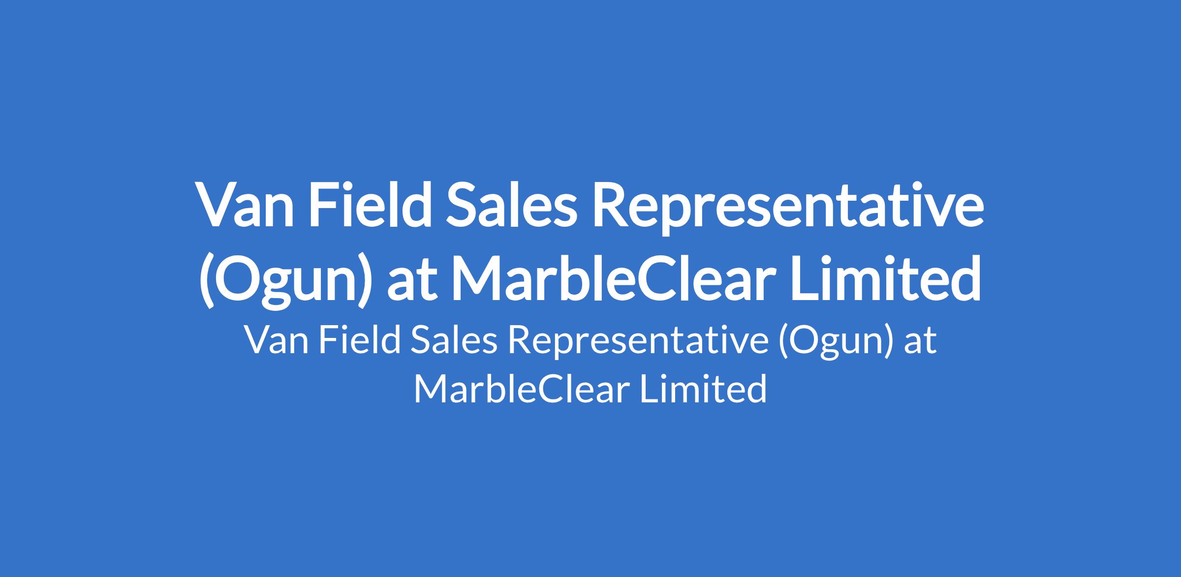 MarbleClear Limited is recruiting to fill the position of: Van Field Sales Representative. The position is located in Abeokuta, Ogun State. Salary: N100,000 - N120,000 per month. Interested candidates should possess a minimum of OND or equivalent qualification, valid drivers license and proficiency in driving a manual transmission van. with a minimum of 2 years of proven experience in van sales or direct sales distribution.