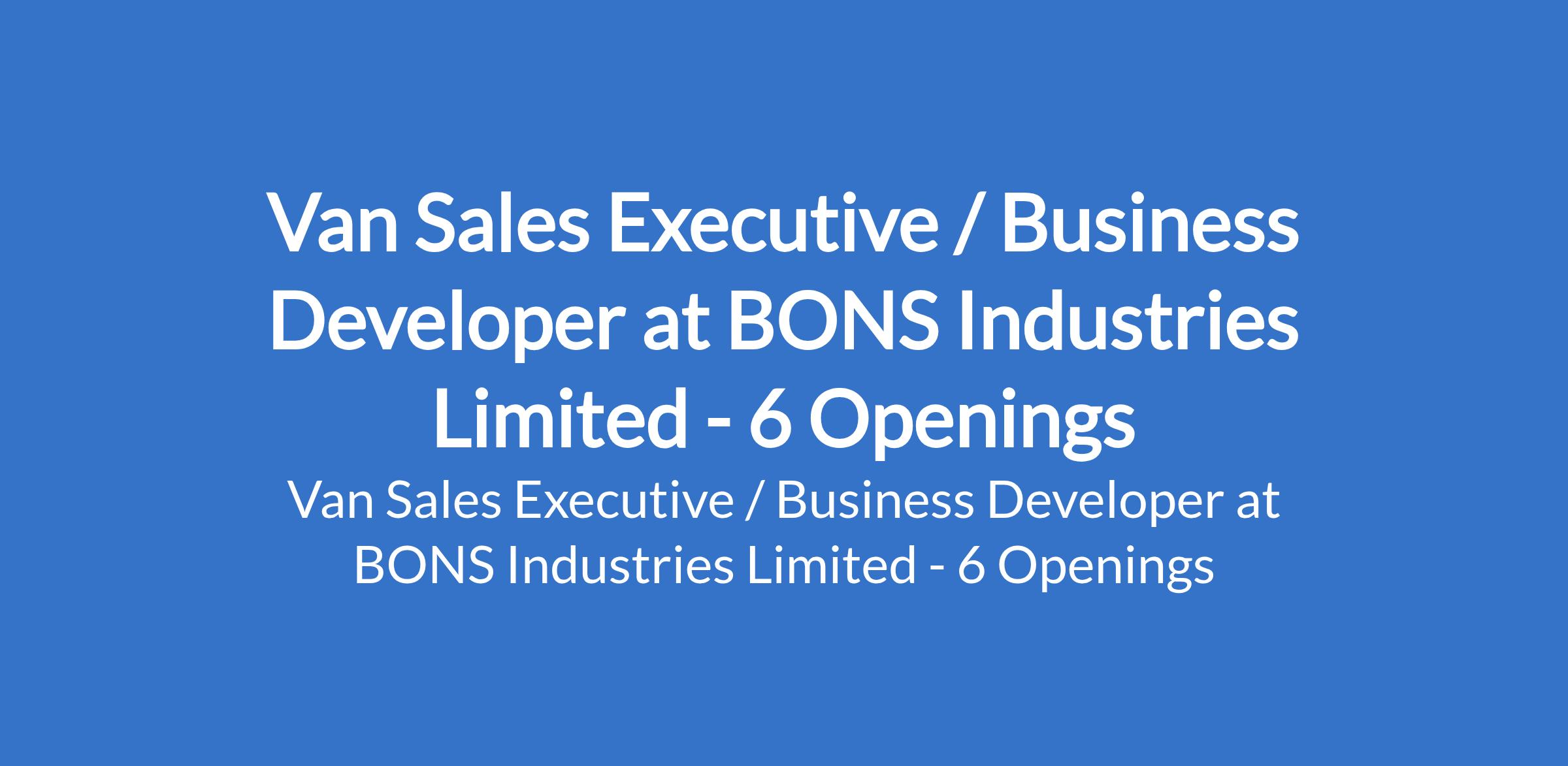 BONS Industries Limited is recruiting to fill the position of: Van Sales Executive / Business Developer. The position is located in Abuja, Abia, Anambra, Enugu, Kaduna and Lagos States. Salary: N200,000 - N300,000 / month. Interested candidates should possess minimum of an HND / Bachelors Degree in Marketing, Business Administration, sales or related fields and a valid drivers license.