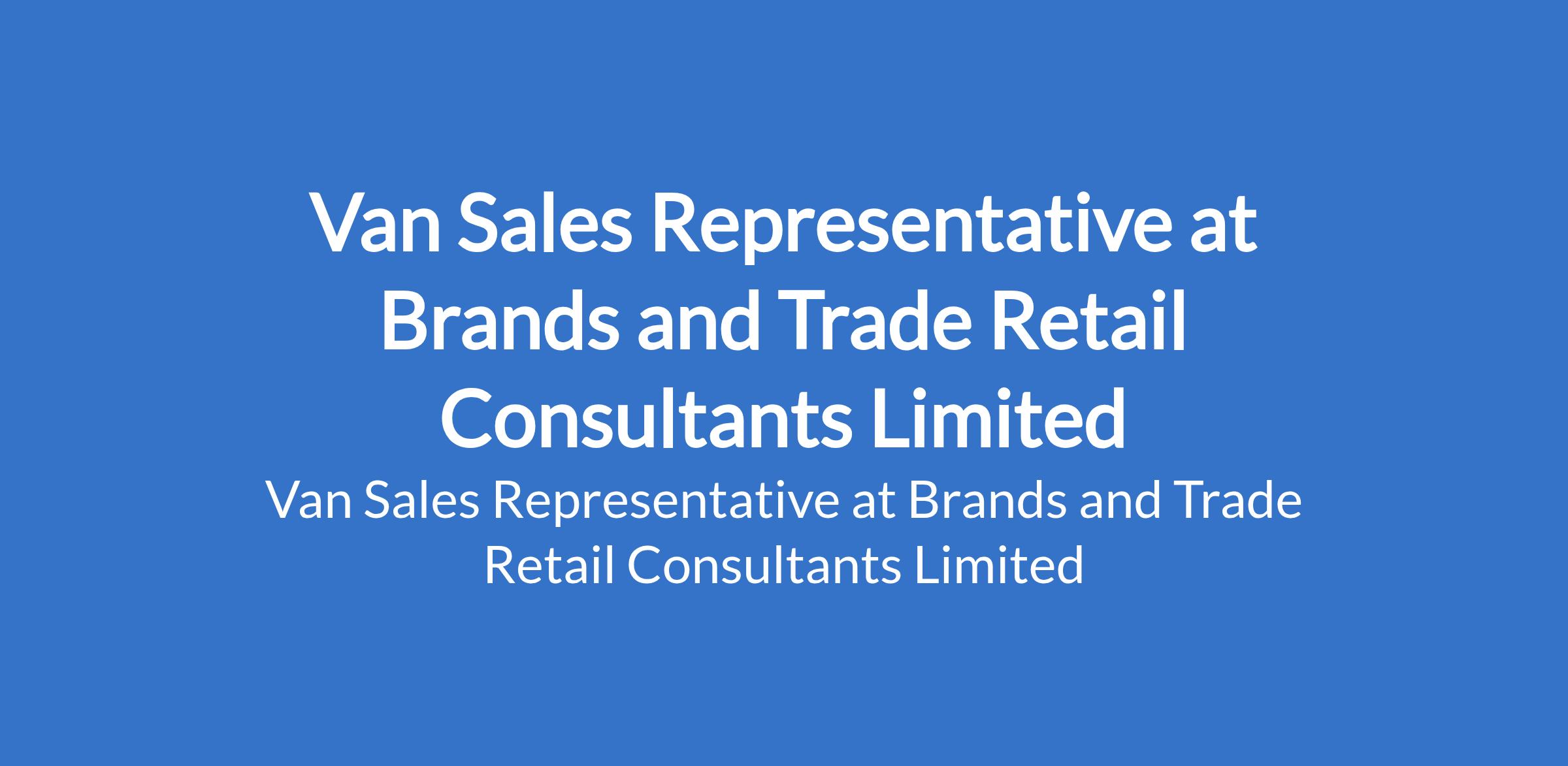 Brands and Trade Retail Consultants Limited - Our client is recruiting to fill the position of: Van Sales Representative. The position is located in Lagos Mainland, Lagos State. Salary: N90,000 - N214,000 per month Interested candidates should possess an ND or equivalent qualification with 12 years sales experience (beverage/FMCG preferred) and Applicants must reside within or close to these locations.