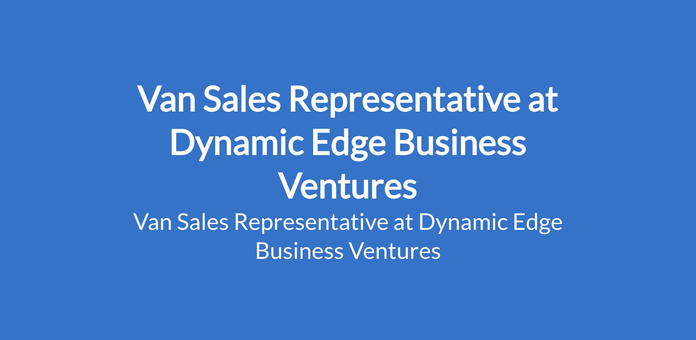 Dynamic Edge Business Ventures is recruiting to fill the position of: Van Sales Representative. The position is located in Lagos State. Interested candidates should possess relevant qualifications.