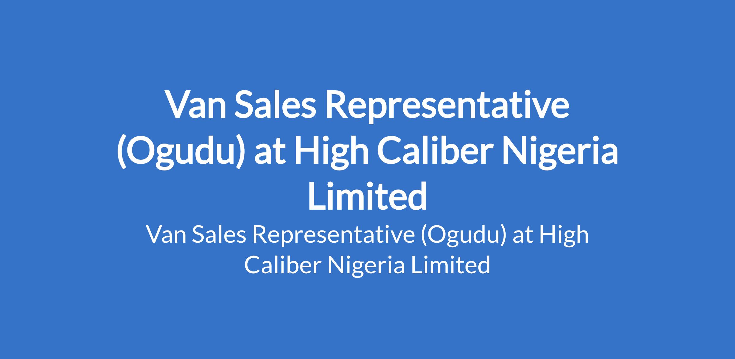 High Caliber Nigeria Limited is recruiting to fill the position of: Van Sales Representative. The position is located in Ogudu, Lagos State. Salary: N140,000 / month. Interested candidates should possess a minimum of SSCE certificate with 2-3 years of working experience.