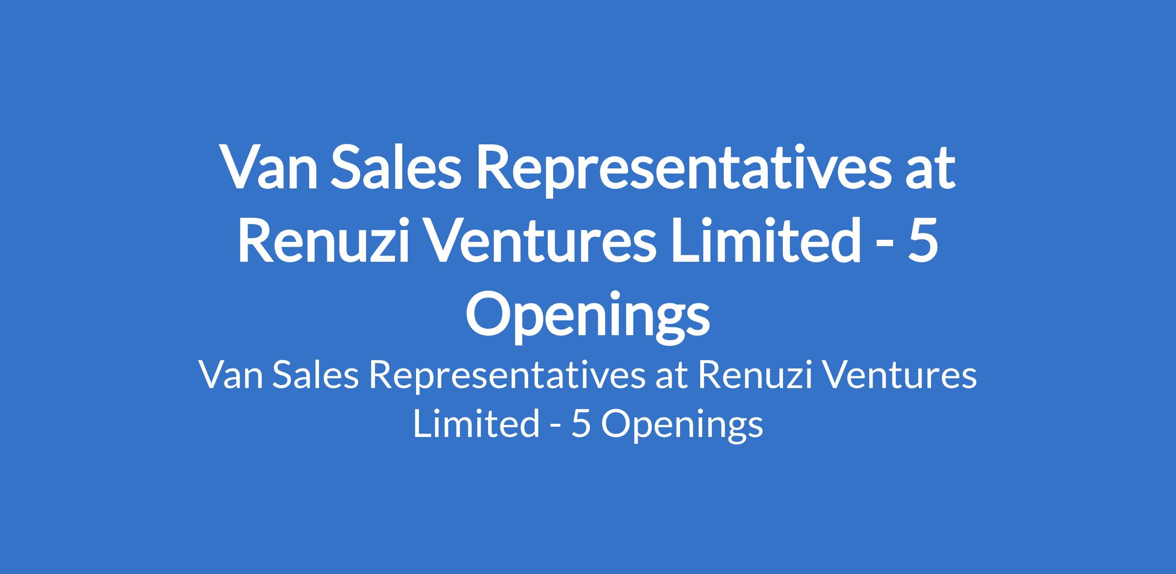 Renuzi Ventures Limited is recruiting to fill the position of: Van Sales Representative. The position is located in Lekki, Ikorodu, Ketu, Ojota and Ago Palace - Lagos State. Interested candidates should possess a minimum of an SSCE / OND qualification, a valid drivers license with a good driving record with 12 years experience in FMCG van sales or distribution.
