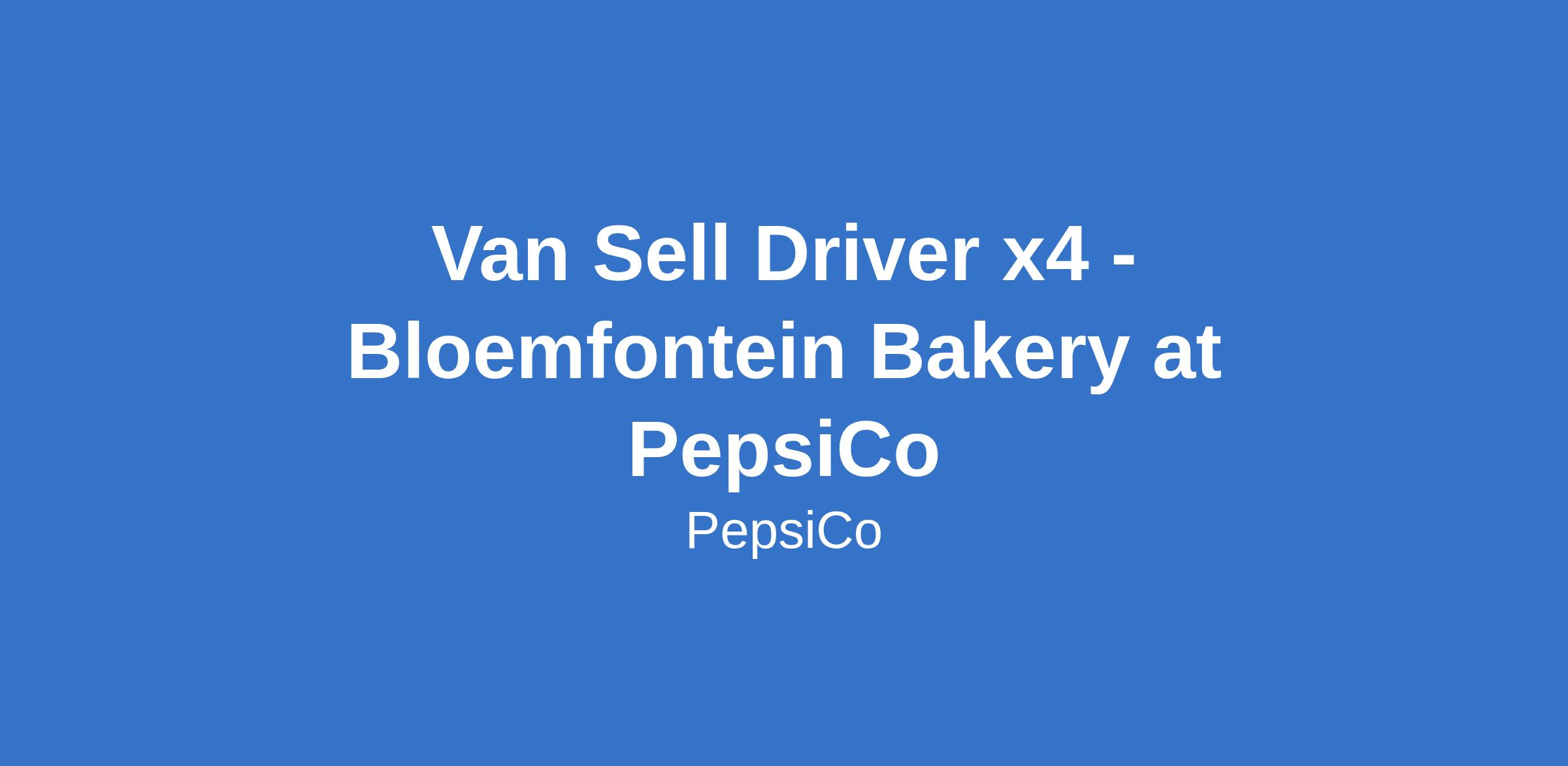 Van Sell Driver x4 - Bloemfontein Bakery at PepsiCo