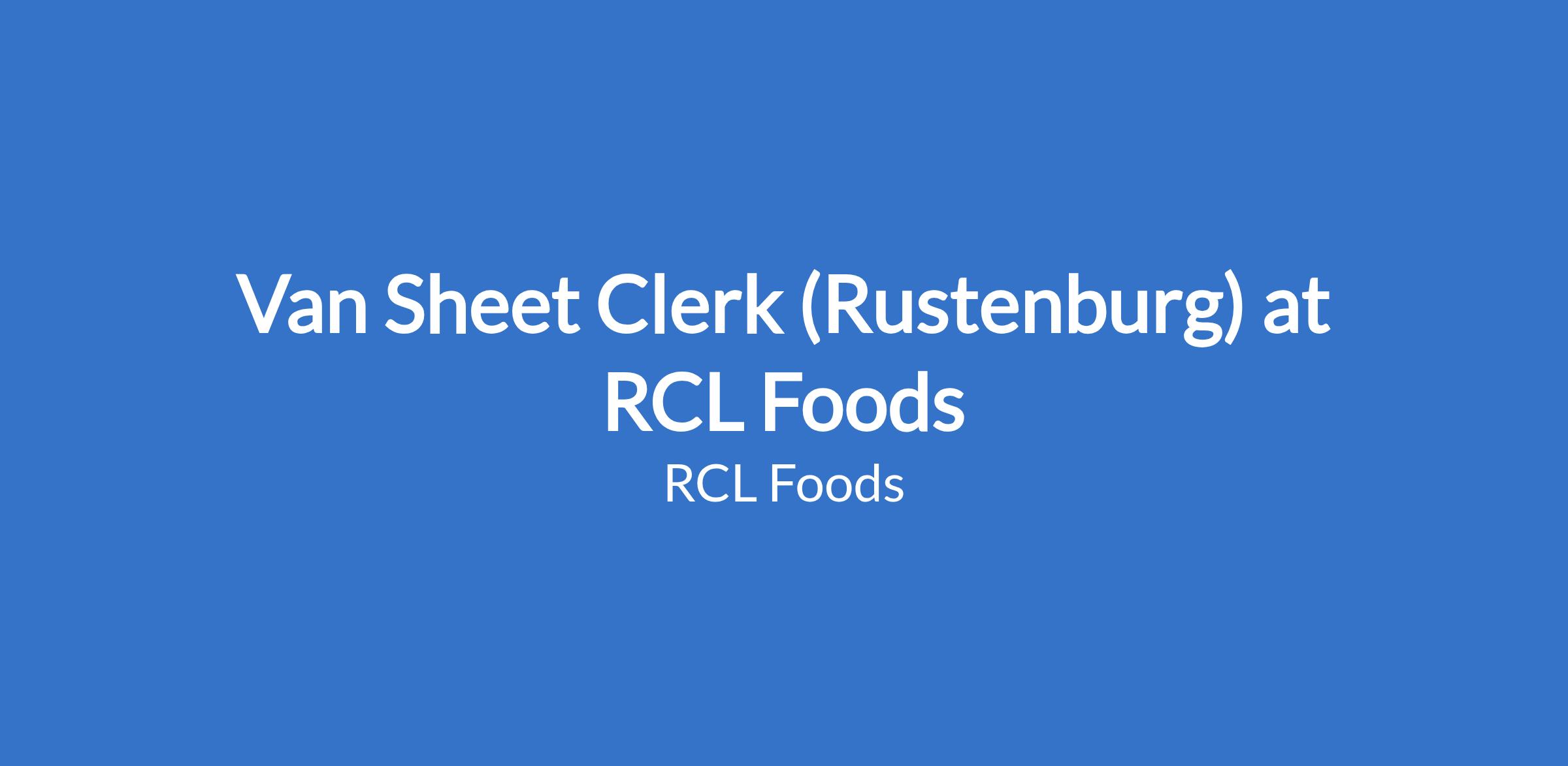 RCL FOODS is on the hunt for a Van Sheet Clerk to join our Commercial team in Rustenburg.