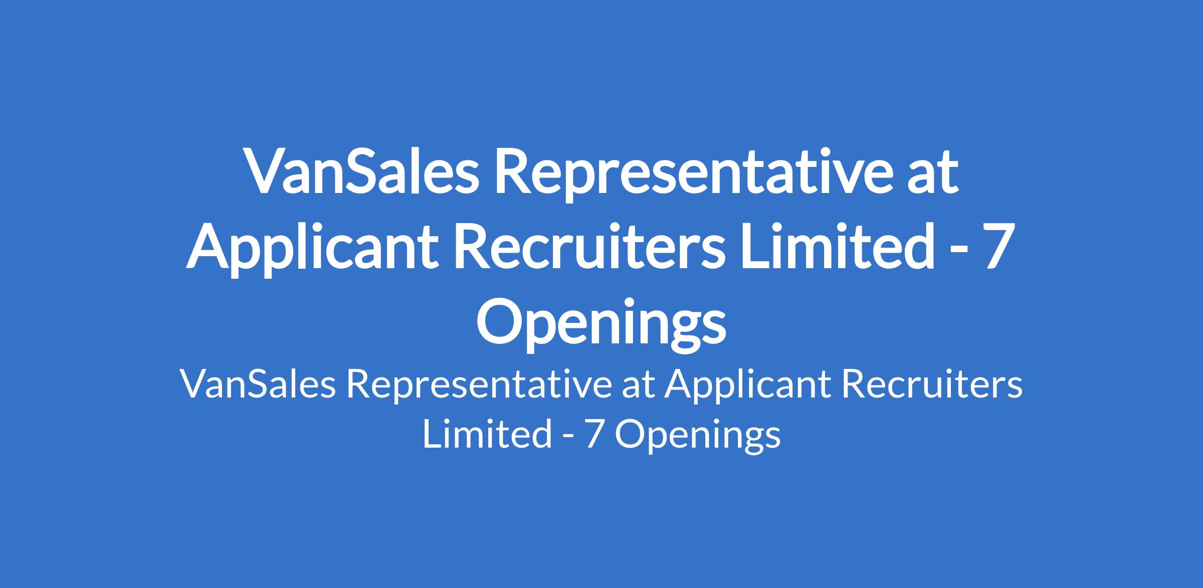 VanSales Representative at Applicant Recruiters Limited - 7 Openings