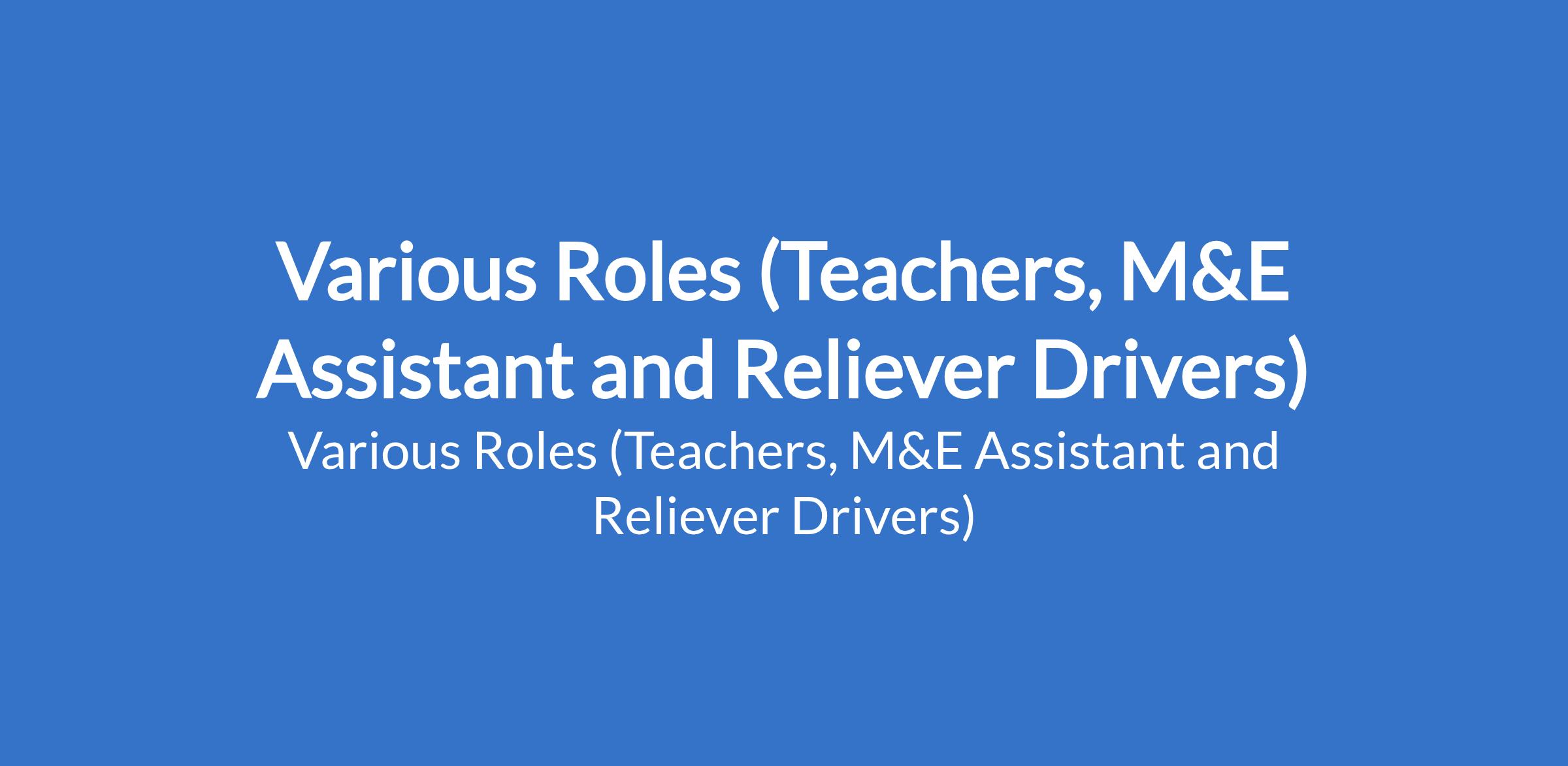 Various Roles (Teachers, M&E Assistant and Reliever Drivers)