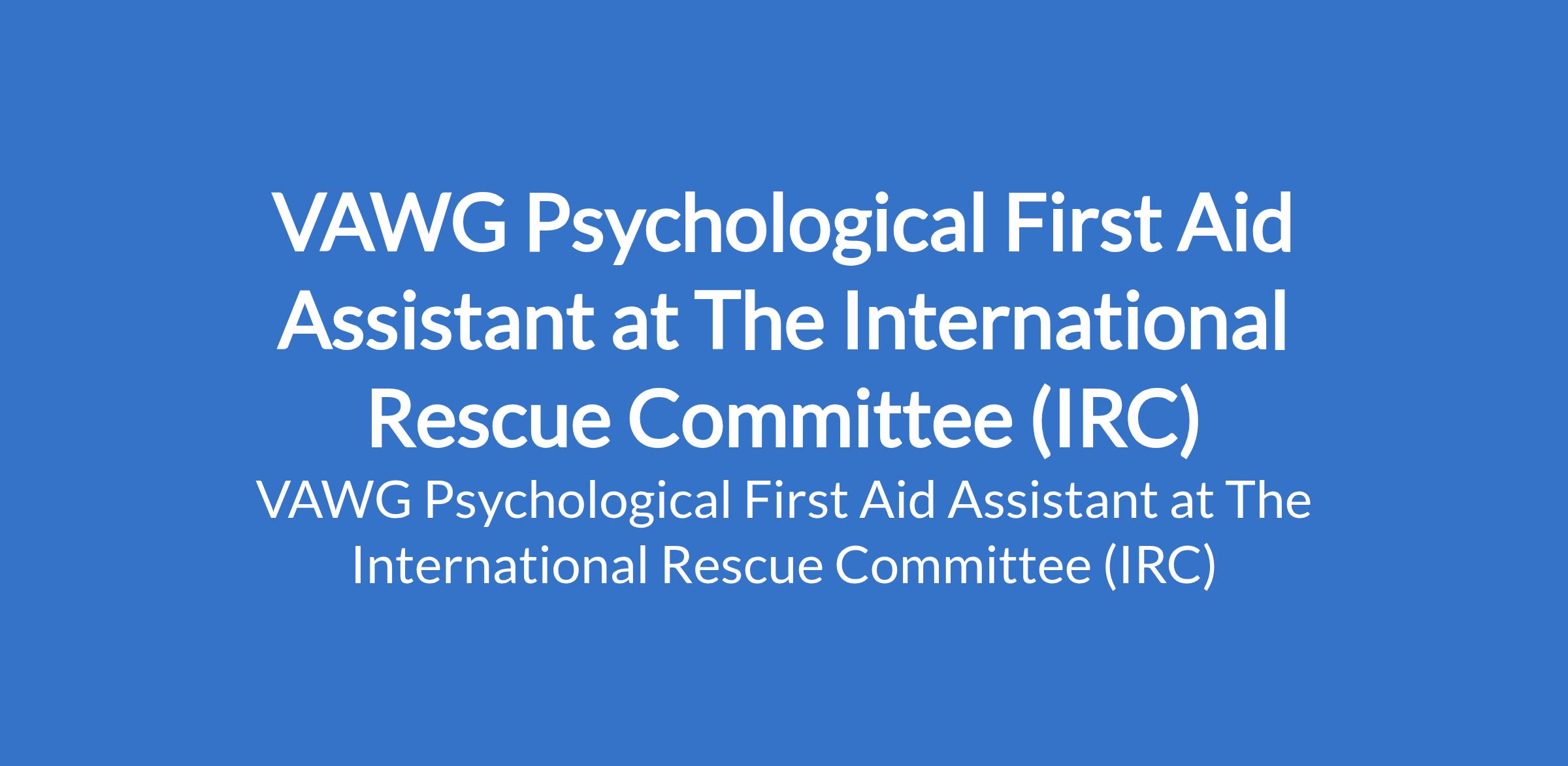 The International Rescue Committee (IRC) is recruiting to fill the position of: VAWG Psychological First Aid Assistant. The position is located in Monguno, Borno State. Interested candidates should possess a Diploma or University Degree in Psychology, Social Work, Public Health, Nursing, or related field with 12 years experience in PFA, psychosocial support, or health-related programming in humanitarian settings.
