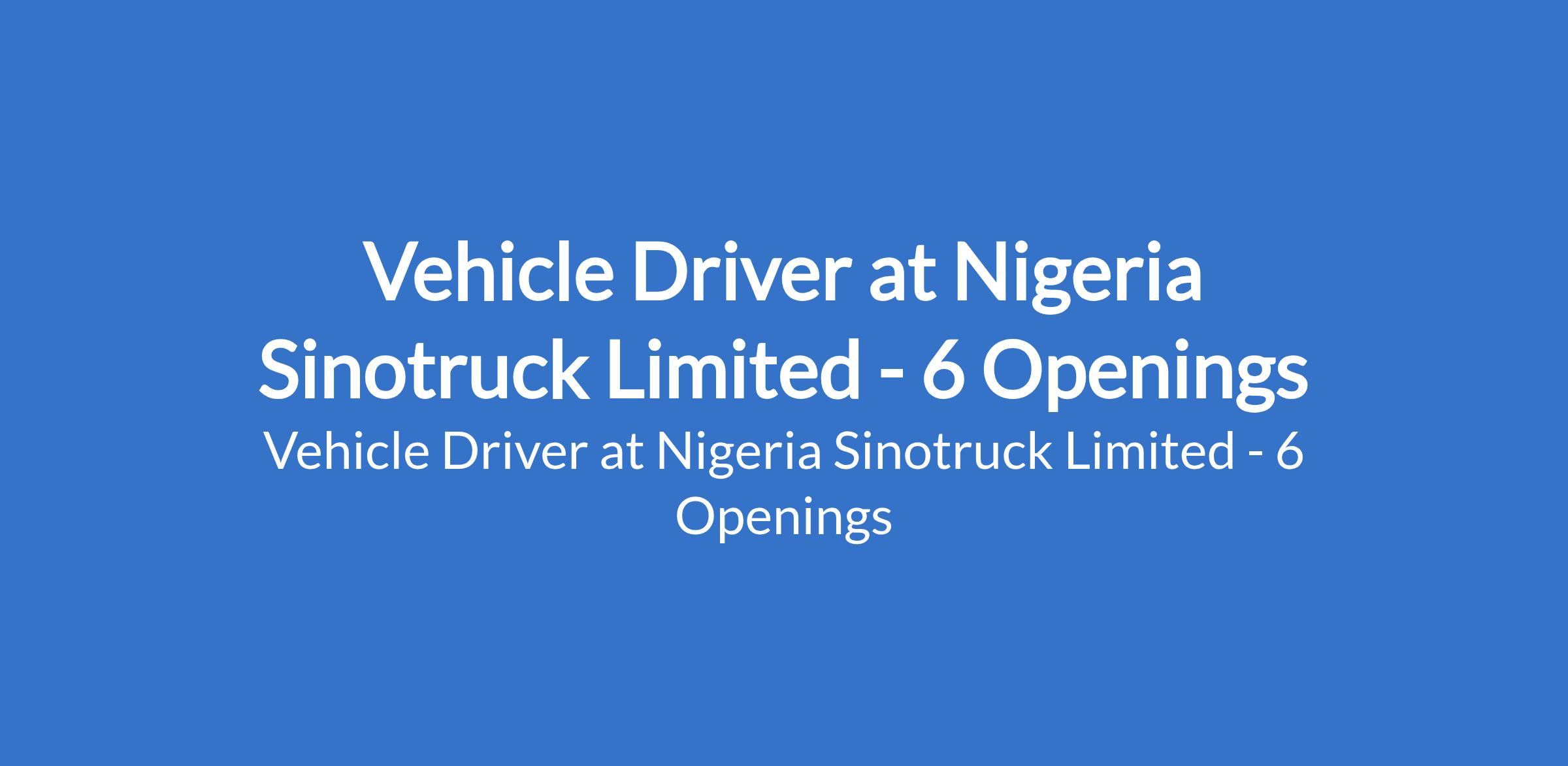 Nigeria Sinotruck Limited is recruiting to fill the position of: Vehicle Driver. The position is located in Abuja (FCT), Ibadan - Oyo, Sagamu - Ogun, Ikeja - Lagos, Benin - Edo and Port Harcourt - Rivers States. Interested candidates should possess minimum of an SSCE or it's equivalent with 510 years proven driving experience.